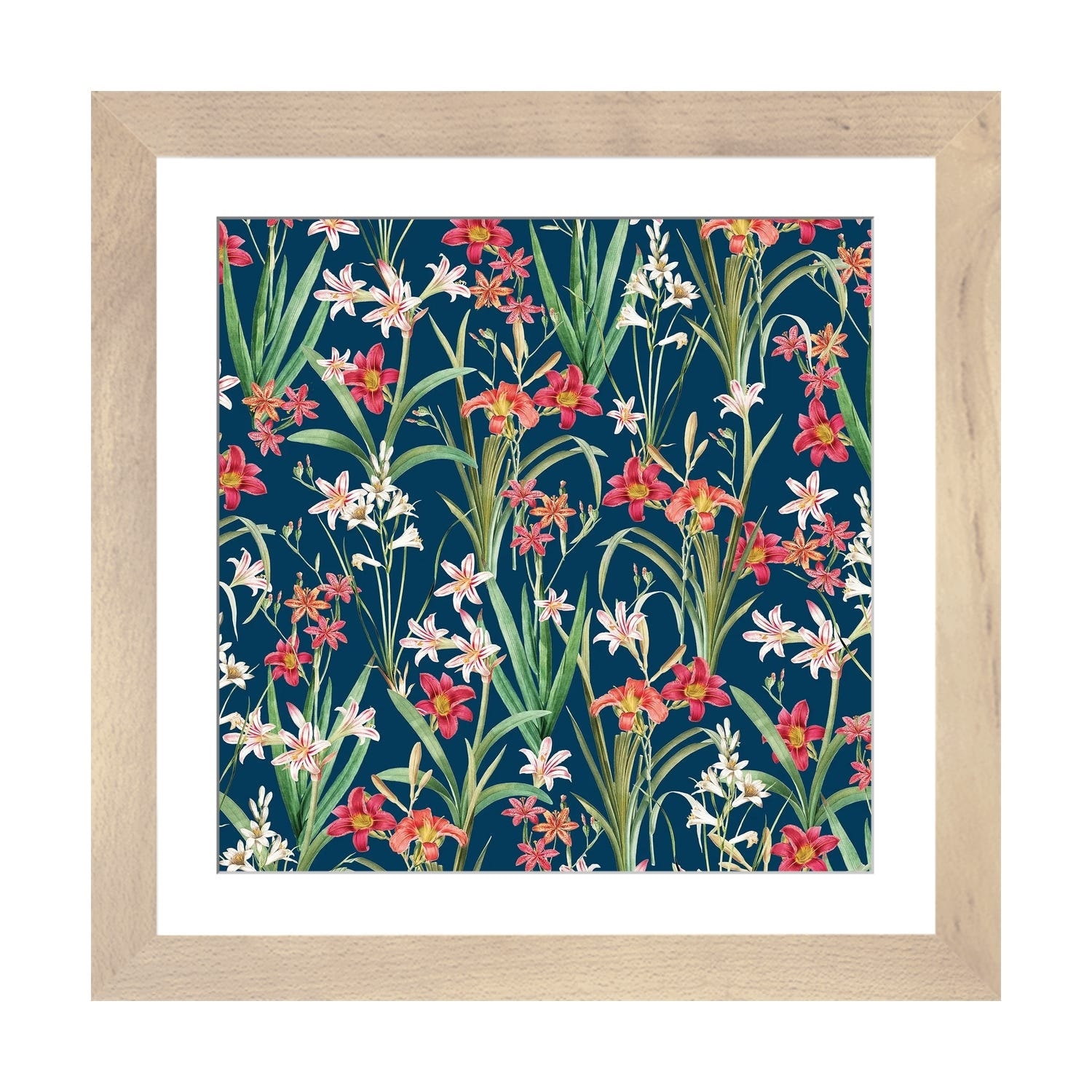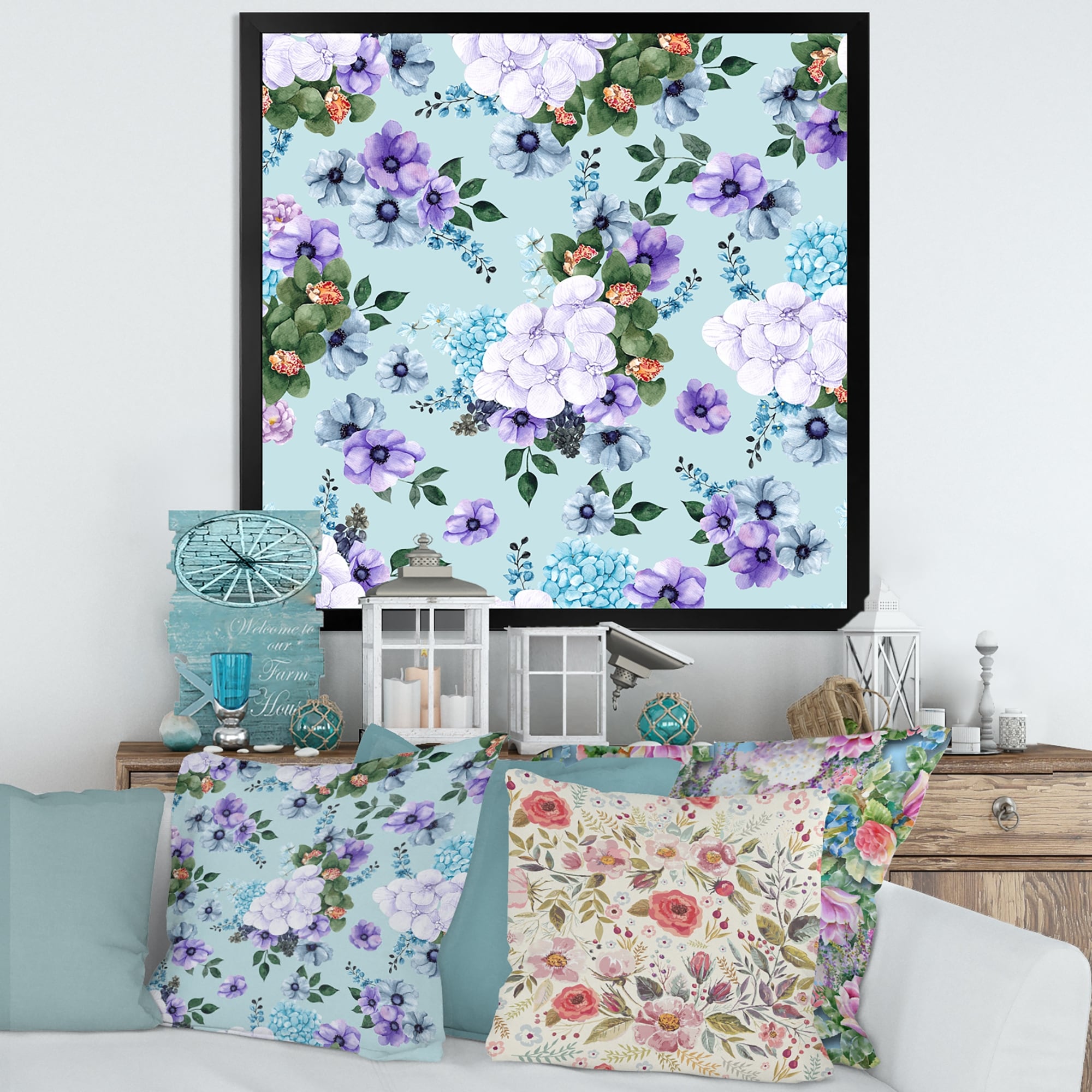 Designart "White And Orange Flowers on Light Blue" Patterned Framed Art Print