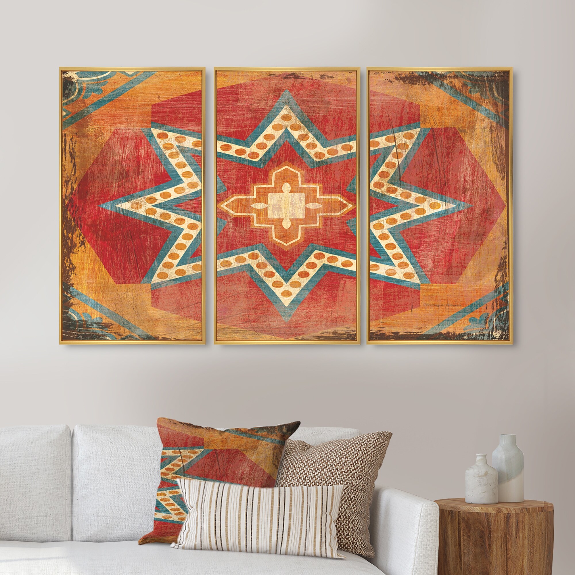 Designart "Moroccan Orange Tiles Collage I" Bohemian & Eclectic Framed Artwork Set of 3 - 4 Colors of Frames