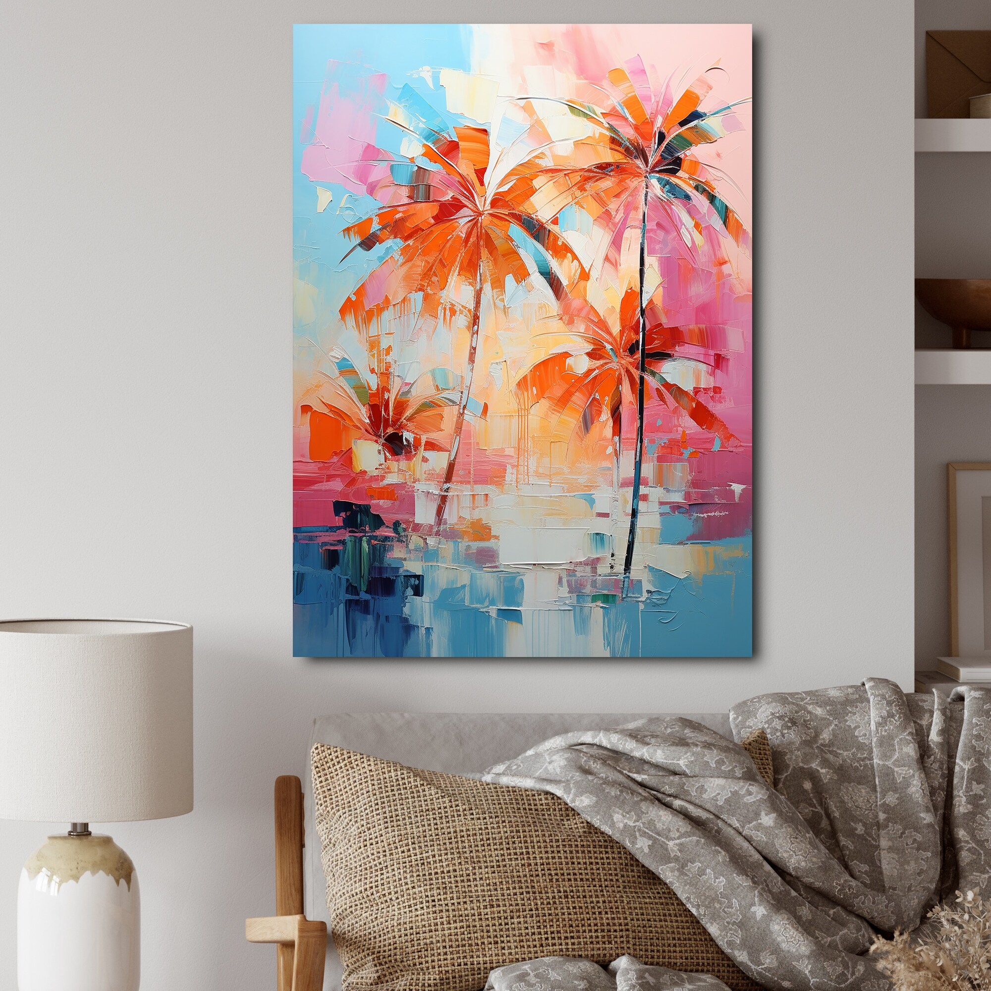 Designart "Orange Pink Palm Trees Abstract III" Palms & Palm Trees Wall Art Prints