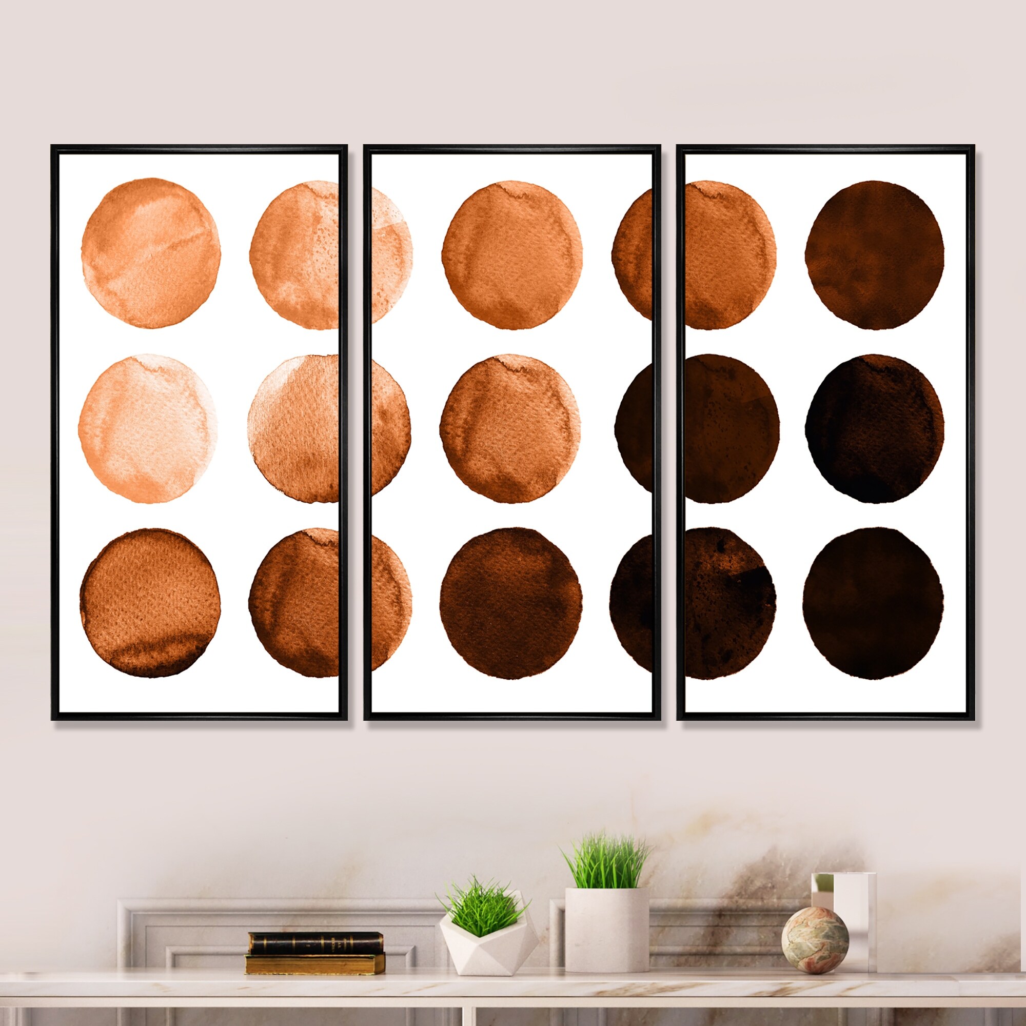Designart "Nine Circles in Shades of Orange And Brown I" Modern Framed Art Set of 3 - 4 Colors of Frames