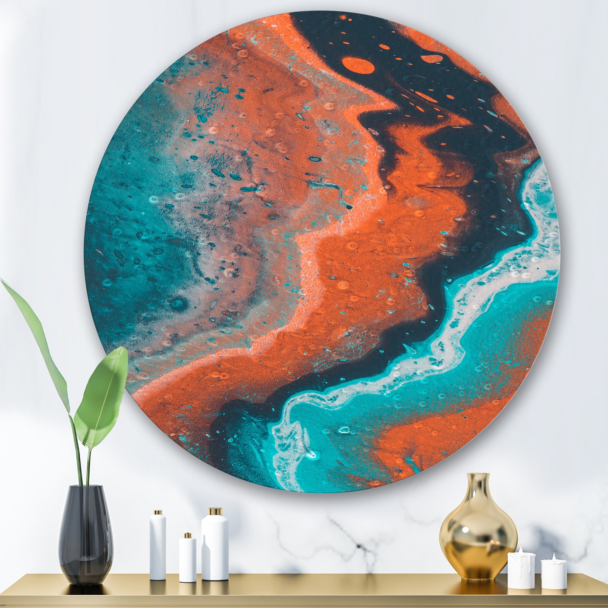 Designart 'Abstract Marble Composition in Blue and Orange I' Modern Metal Circle Wall Art