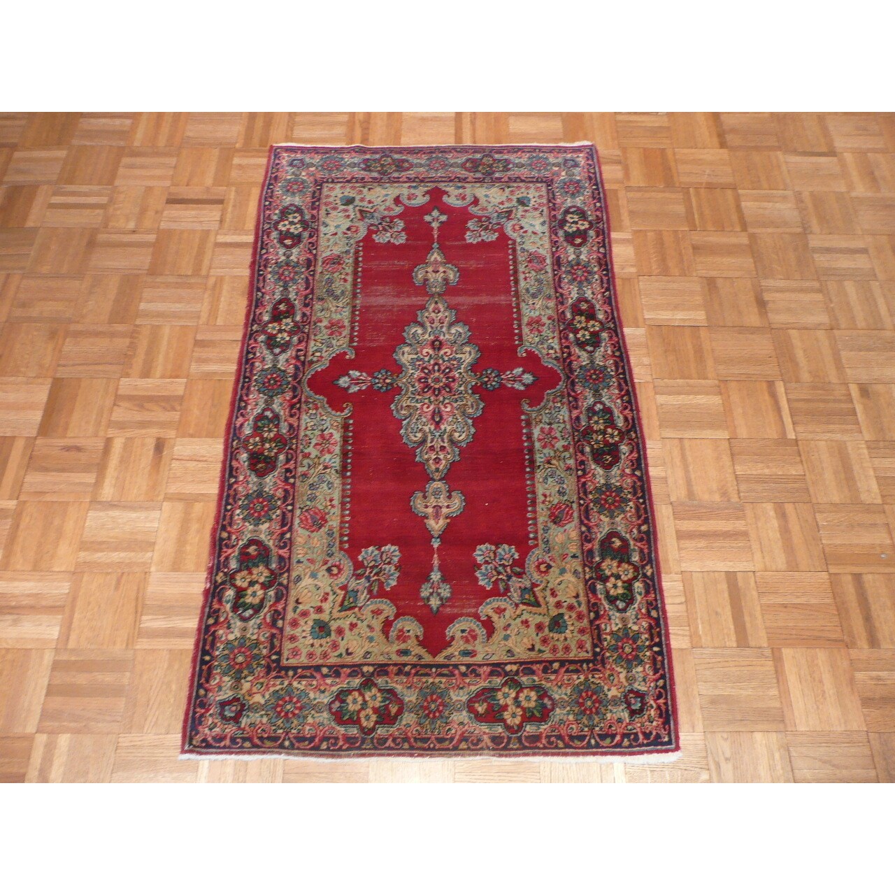 Hand Knotted Red Fine Kerman with Wool Oriental Rug
