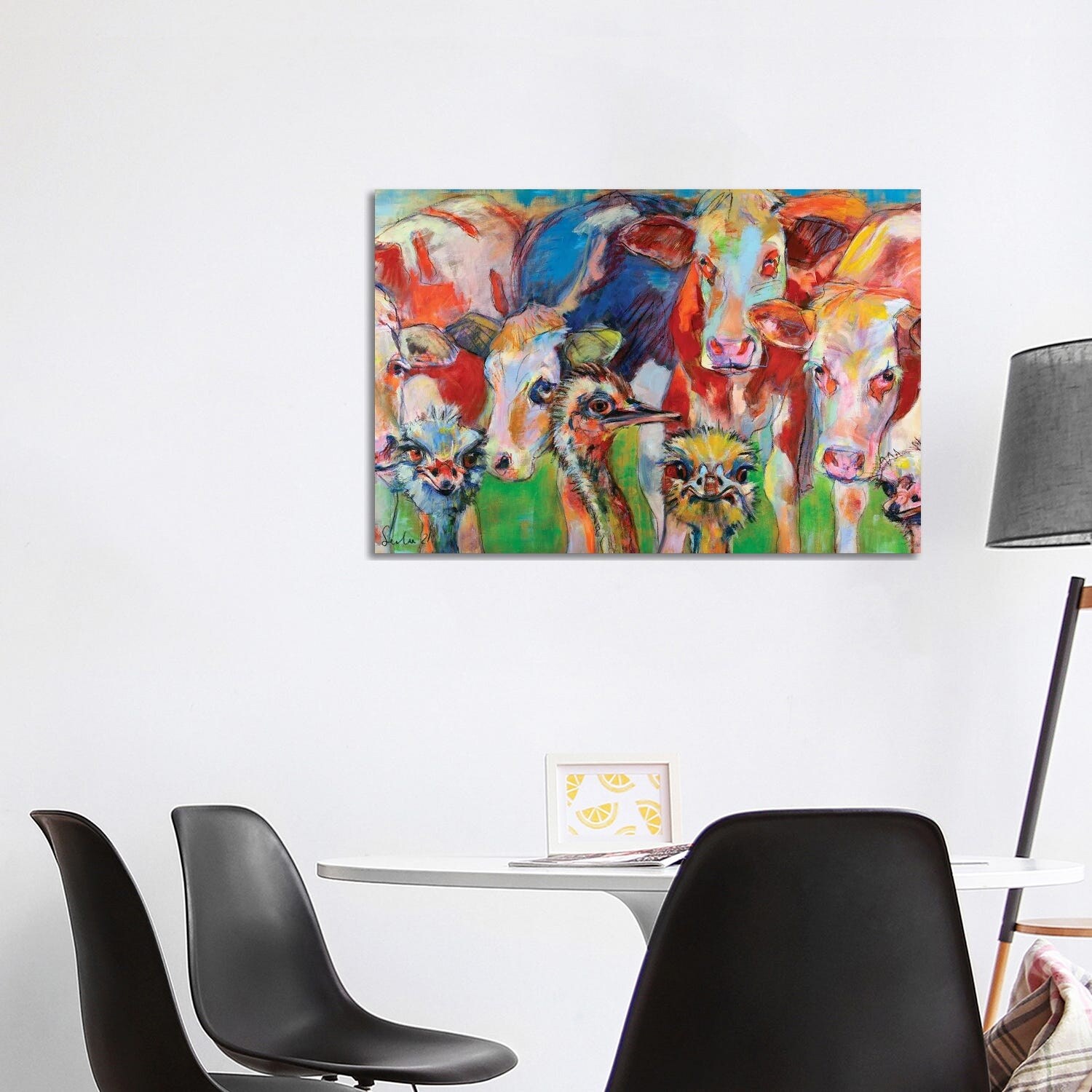 iCanvas "Cows And Ostriches" by Liesbeth Serlie Canvas Print