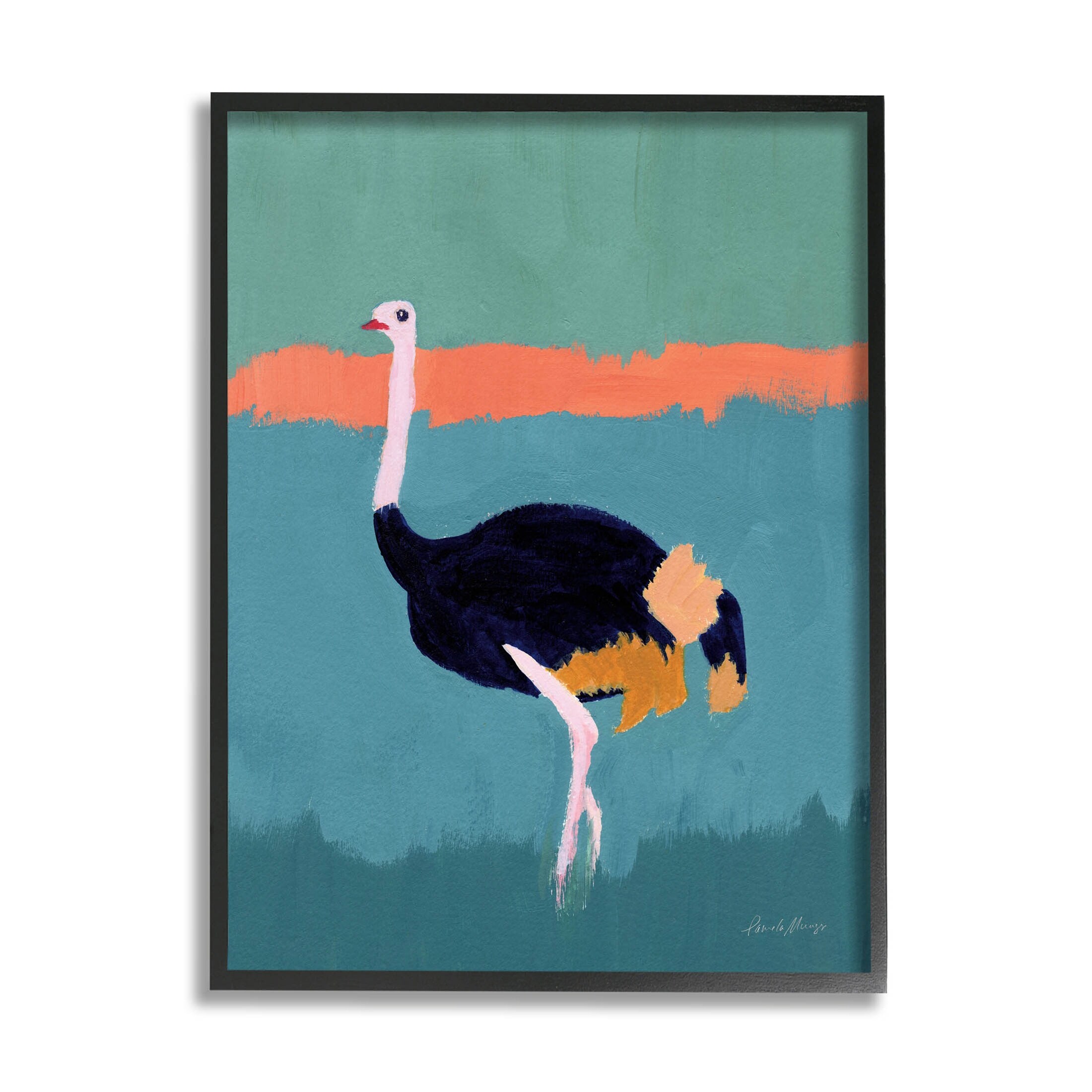 Stupell Industries Modern Ostrich Wildlife Painting Framed Giclee Art, Design by Pamela Munger
