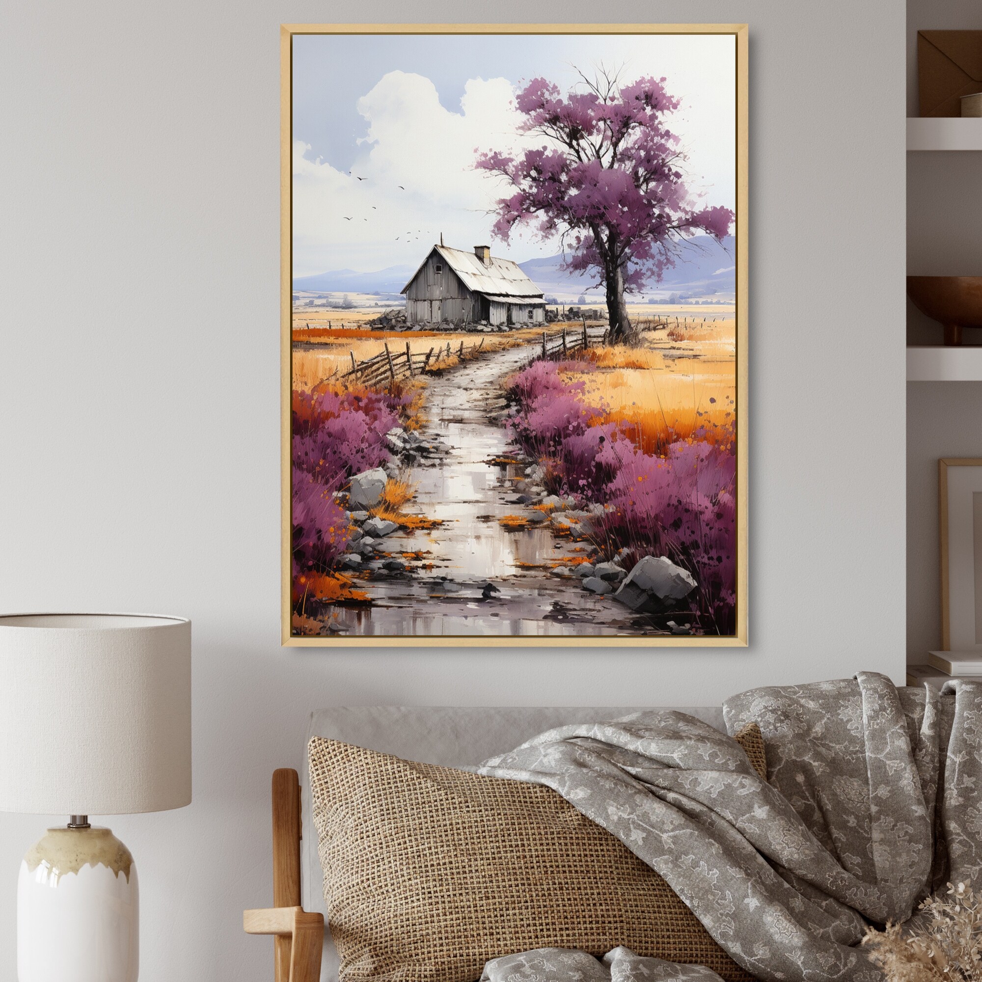 Designart "Purple Barn Country Legacy" Barns Framed Canvas Print