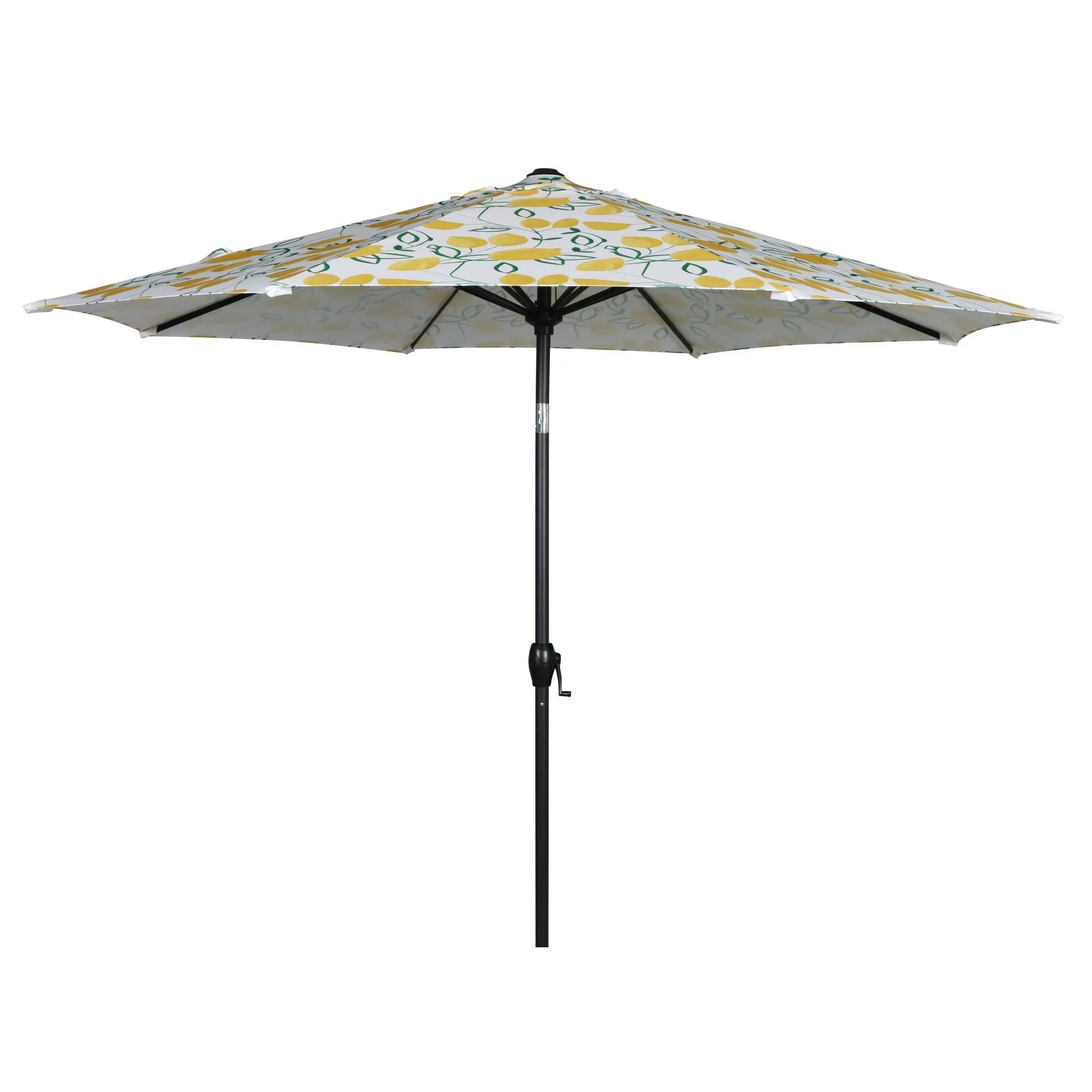 9ft Lemon Print Round Outdoor Tilting Market Patio Umbrella with Crank