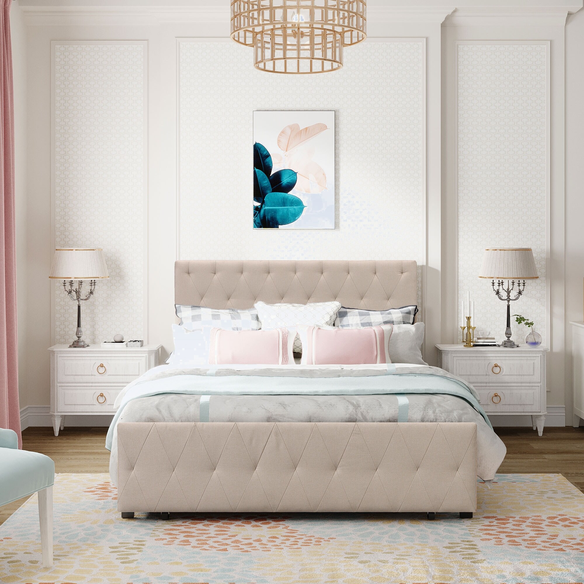 Queen Size Platform Bed with USB Ports,Sockets,Drawers and Shelves