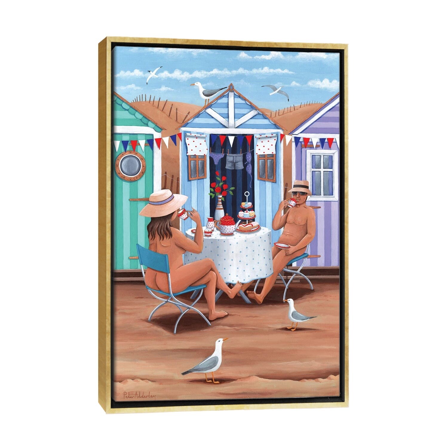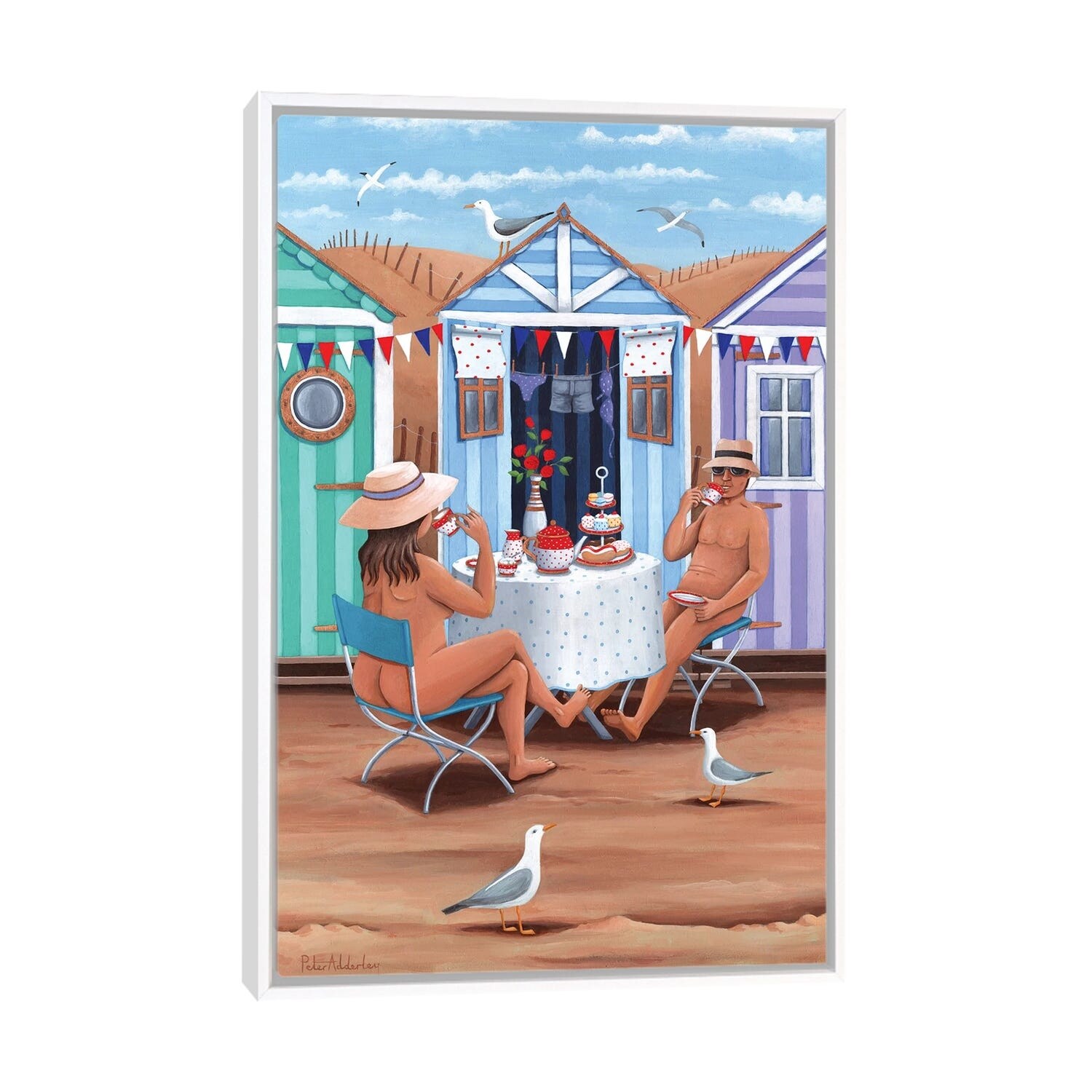 iCanvas "Beach Huts Afternoon Teas" by Peter Adderley Framed Canvas Print