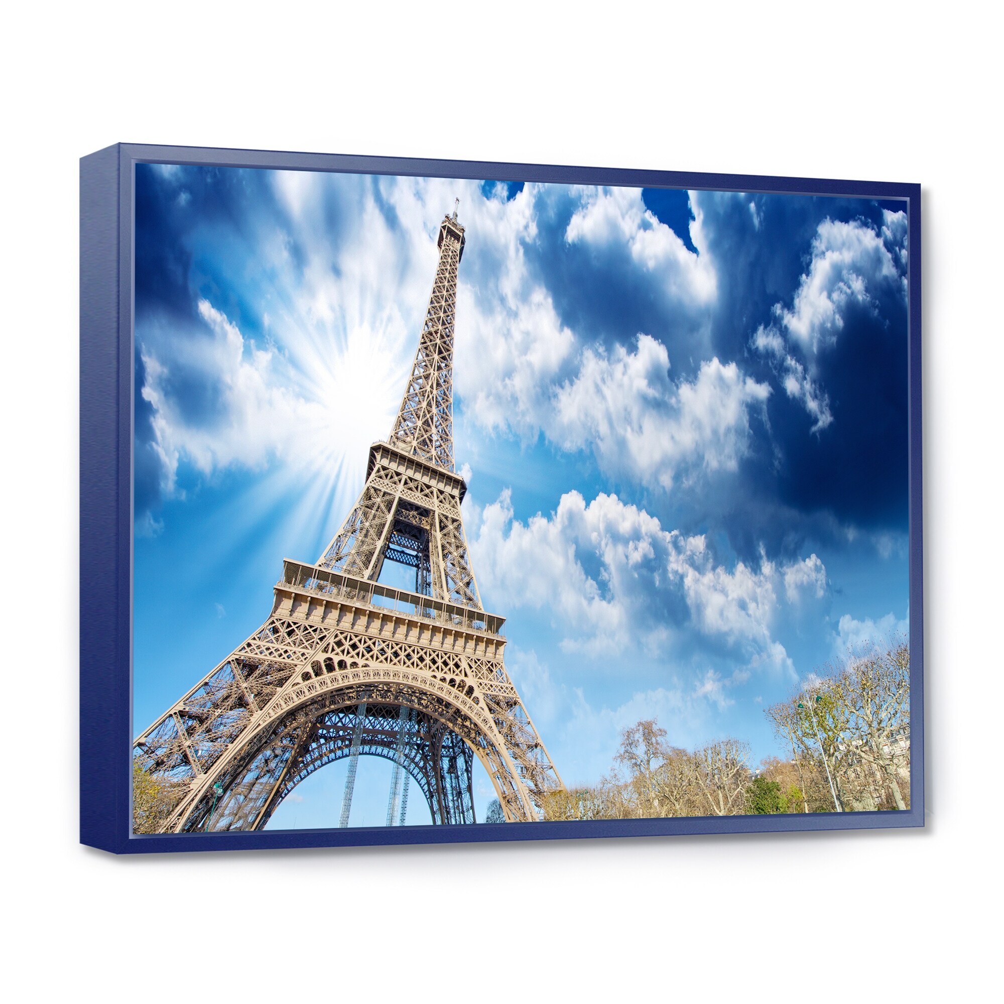 Designart "Eiffel Under Blue Sky" Skyline Photography Framed Canvas Art