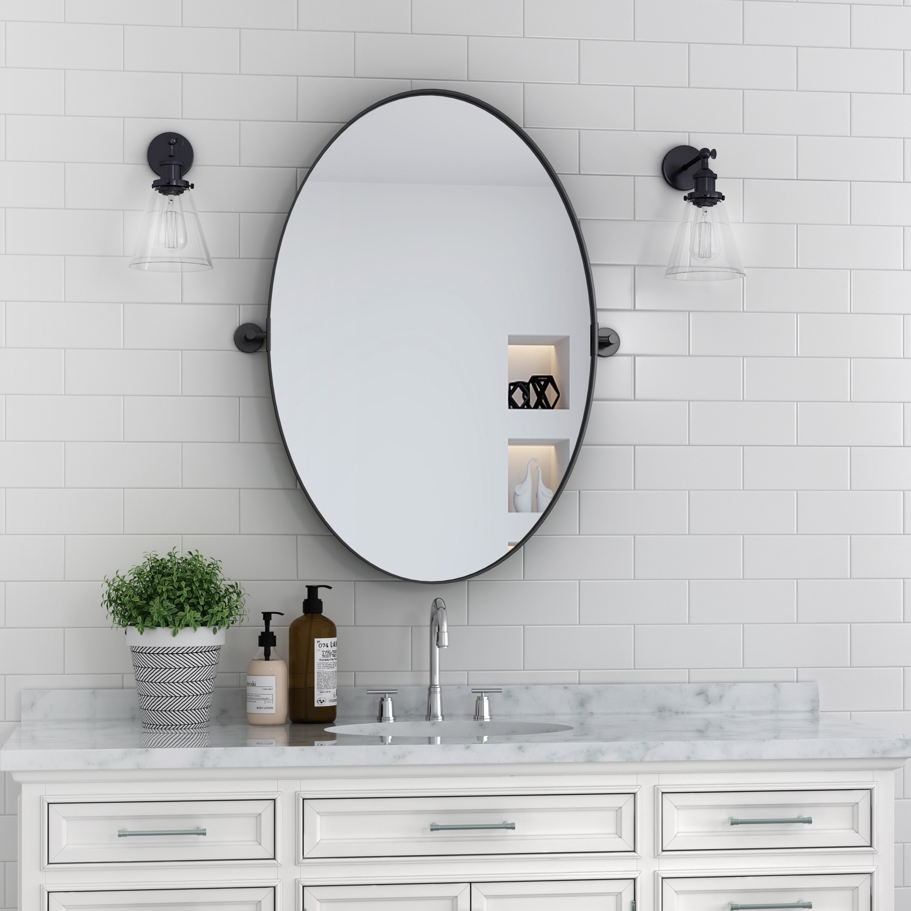 KOHROS Oval Pivot Black Metal Framed Wall Mirror