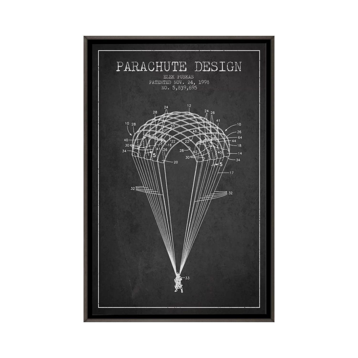 iCanvas "Parachute Design Charcoal Patent Blueprint" by Aged Pixel Framed