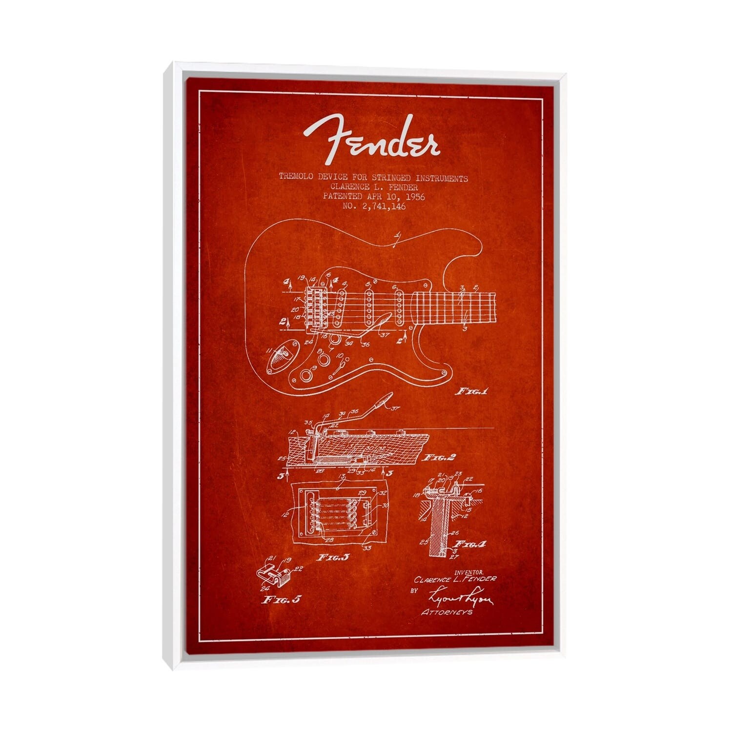 iCanvas "Guitar Red Patent Blueprint" by Aged Pixel Framed
