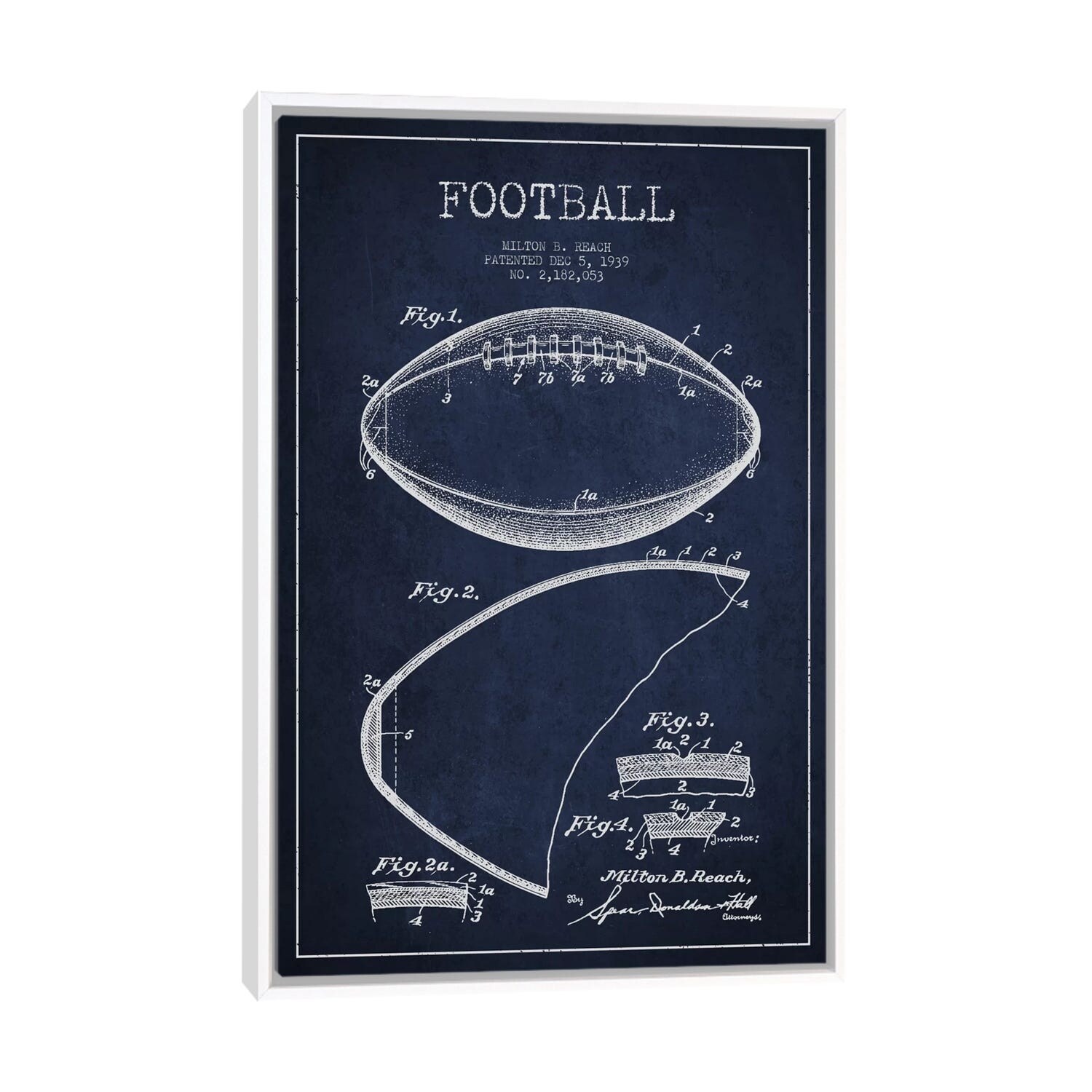 iCanvas "Football Navy Blue Patent Blueprint" by Aged Pixel Framed Canvas Print