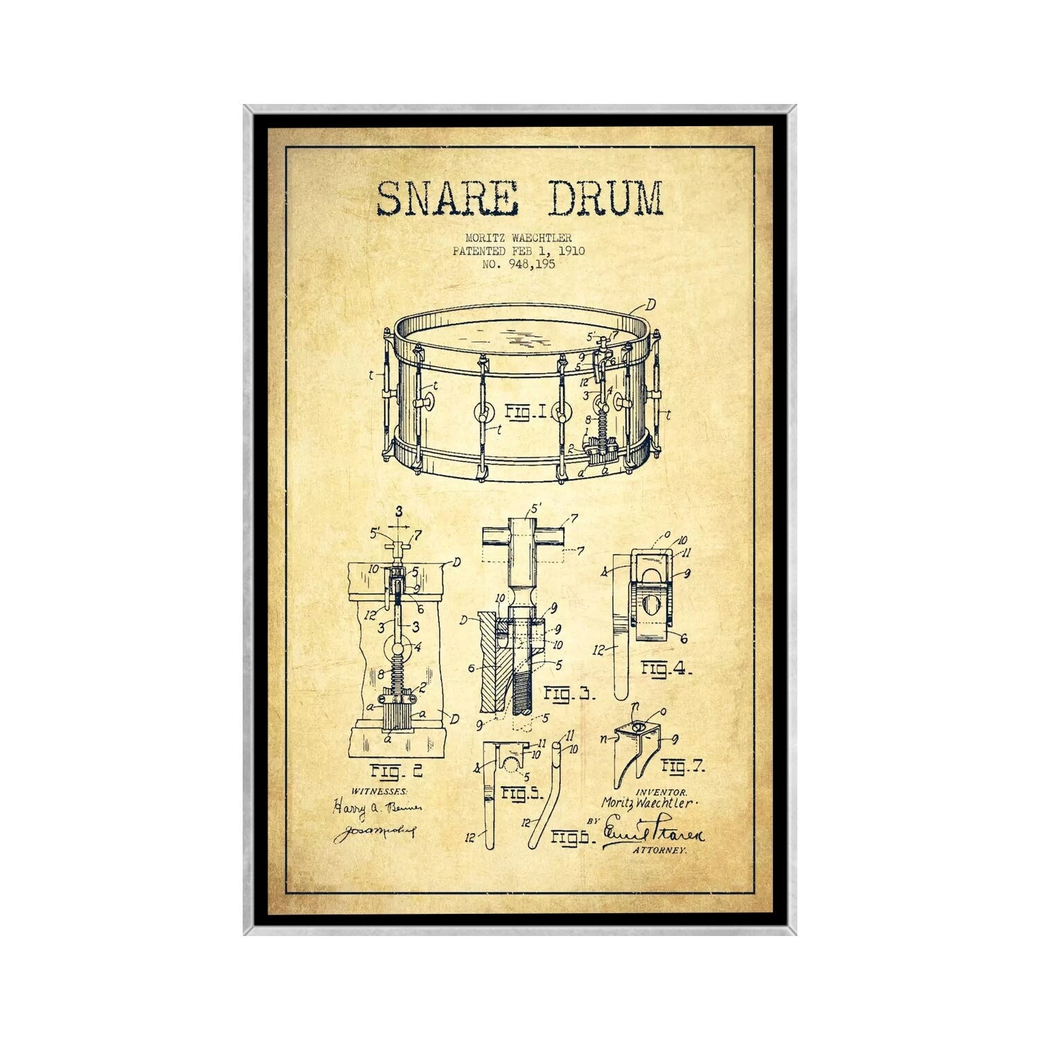 iCanvas "Waechtler Snare Vintage Patent Blueprint" by Aged Pixel Framed