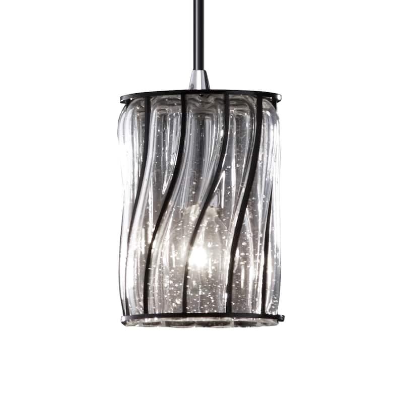 Justice Design Wire Glass 1-light Polished Chrome Pendant, Swirl w/ Clear Bubbles - Cylinder w/ Flat Rim Shade