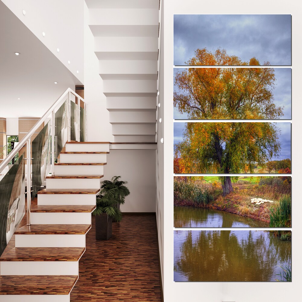 Designart 'House and Quiet Pond in Fall' Landscape Glossy Metal Wall Art
