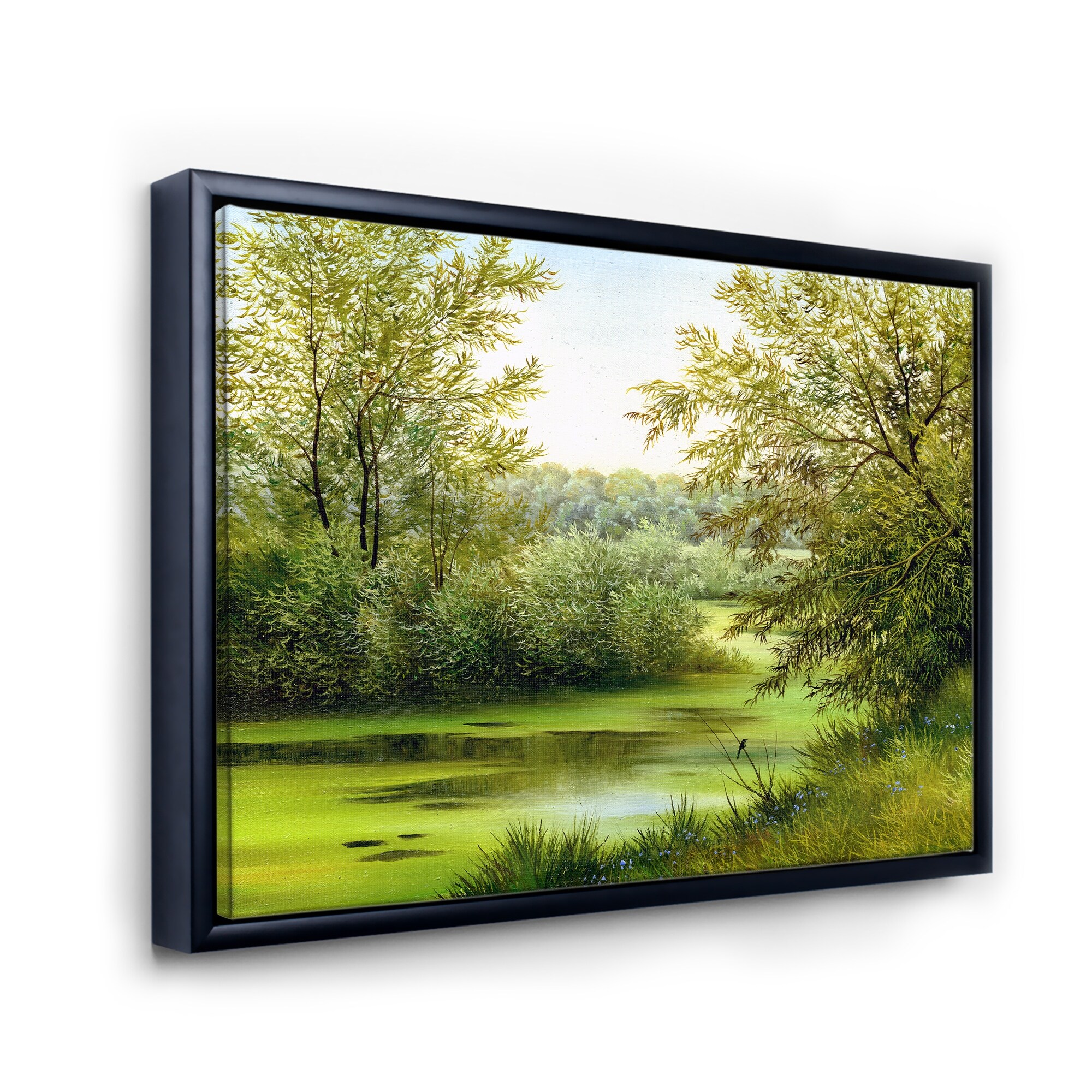 Designart "Green Pond With Spring Trees" Country Framed Canvas Wall Art Print