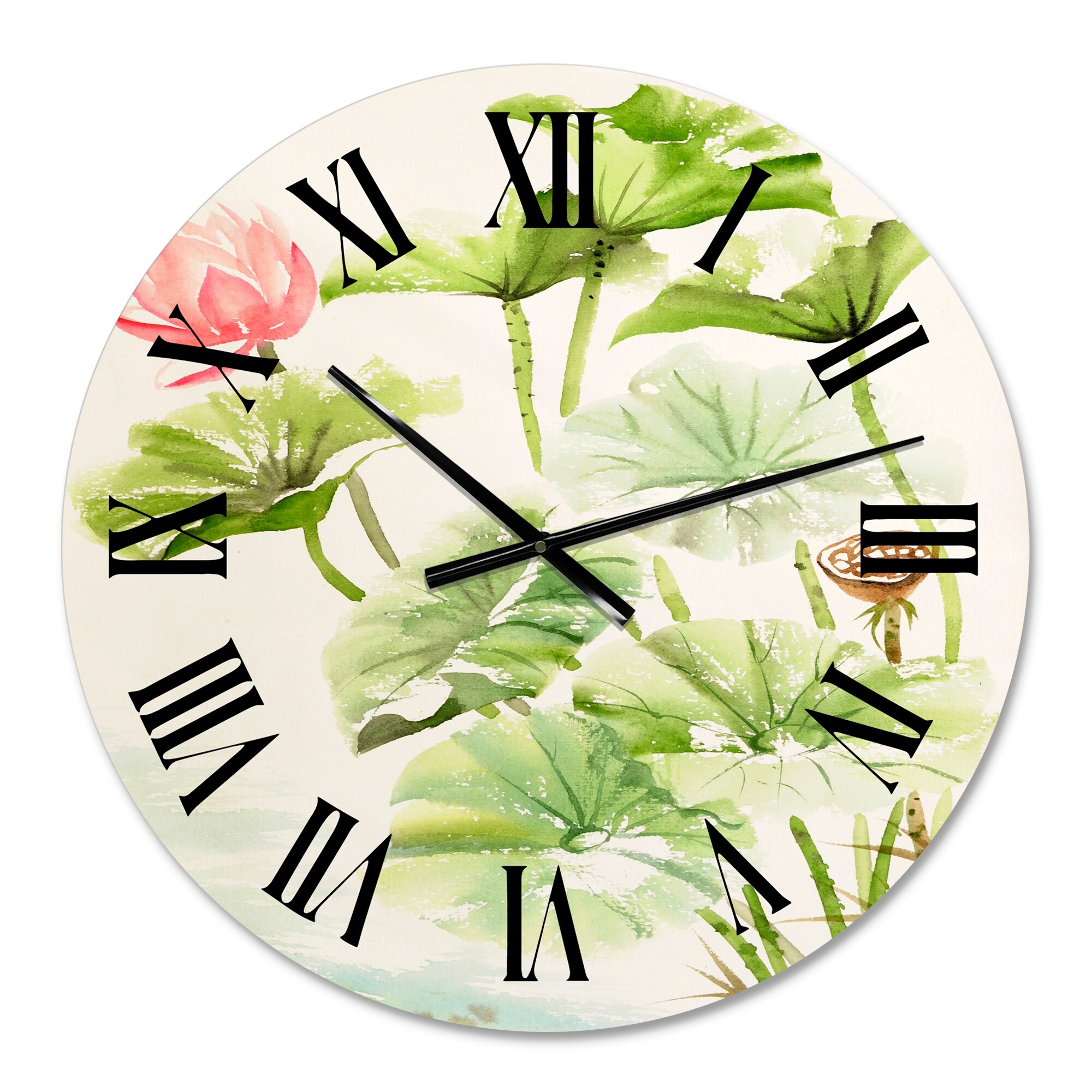 Designart 'Vintage Pink Lotuses in the Pond IV' Traditional wall clock