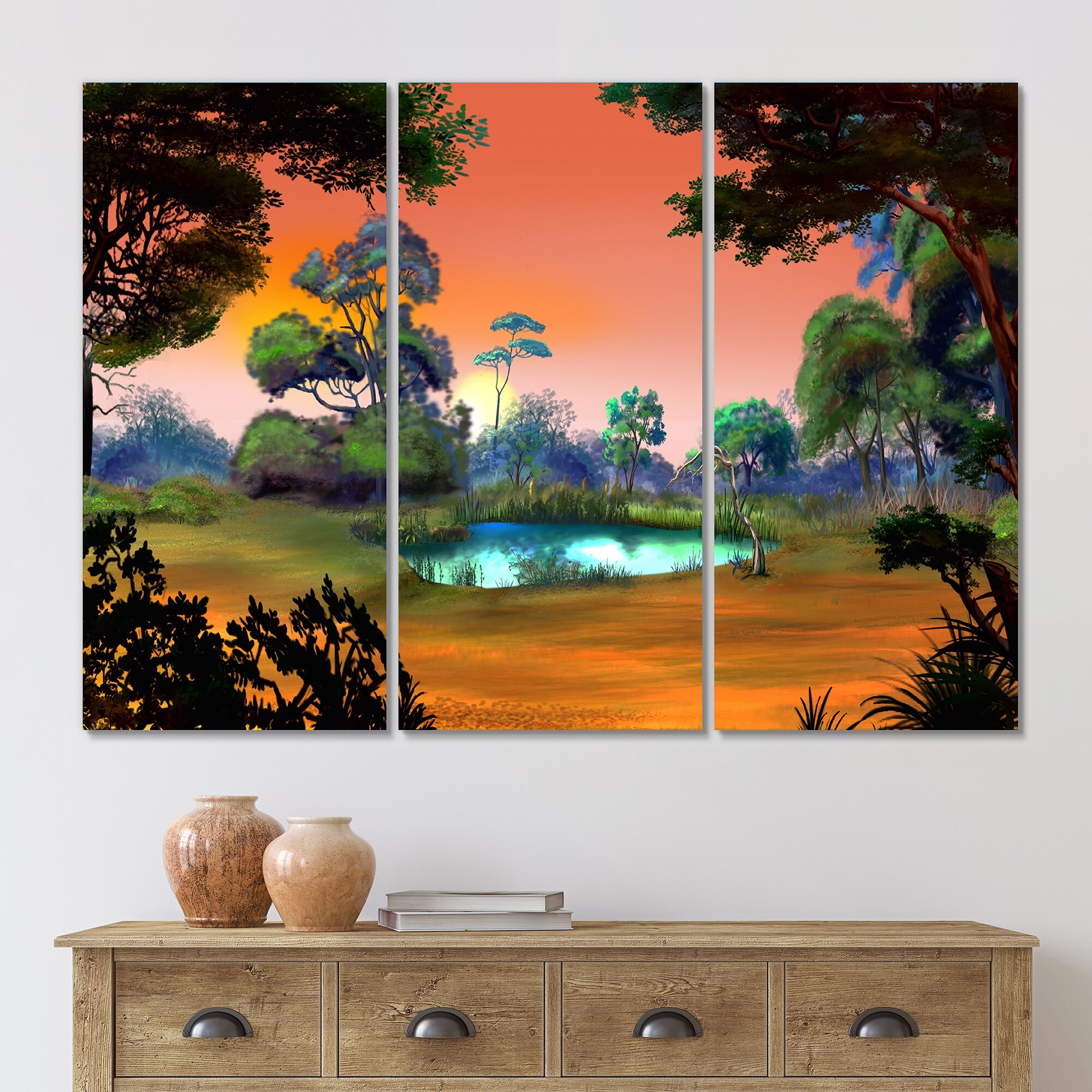 Designart "Small Pond on A Forest Glade At Dawn" Lake House Canvas Wall Art Print