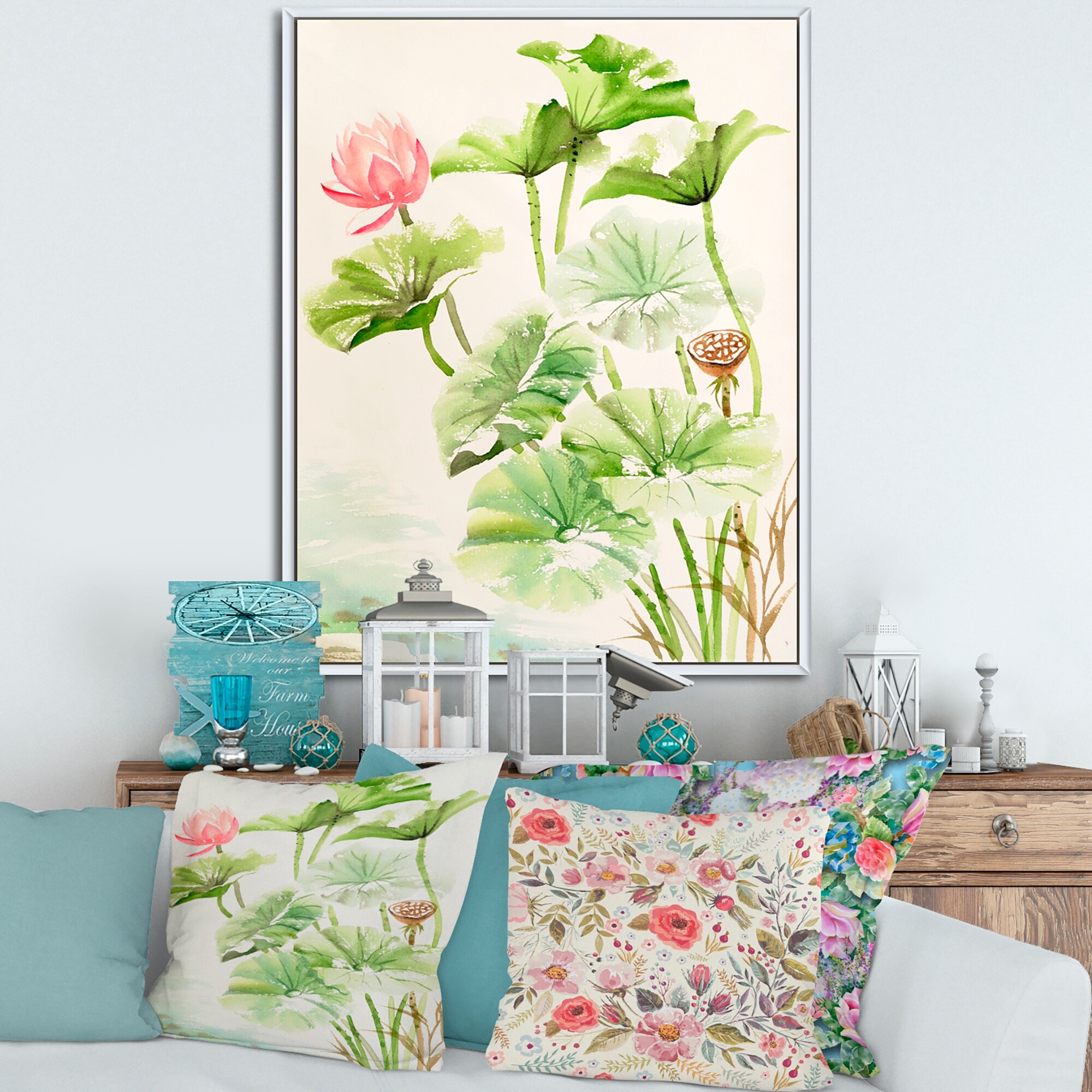 Designart "Vintage Pink Lotuses in the Pond IV" Traditional Framed Canvas Wall Art Print