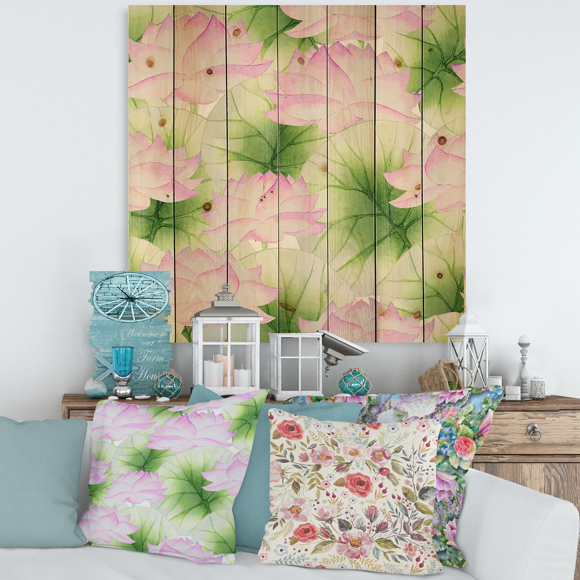 Designart 'Vintage Pink Lotuses in the Pond VIII' Traditional Print on Natural Pine Wood