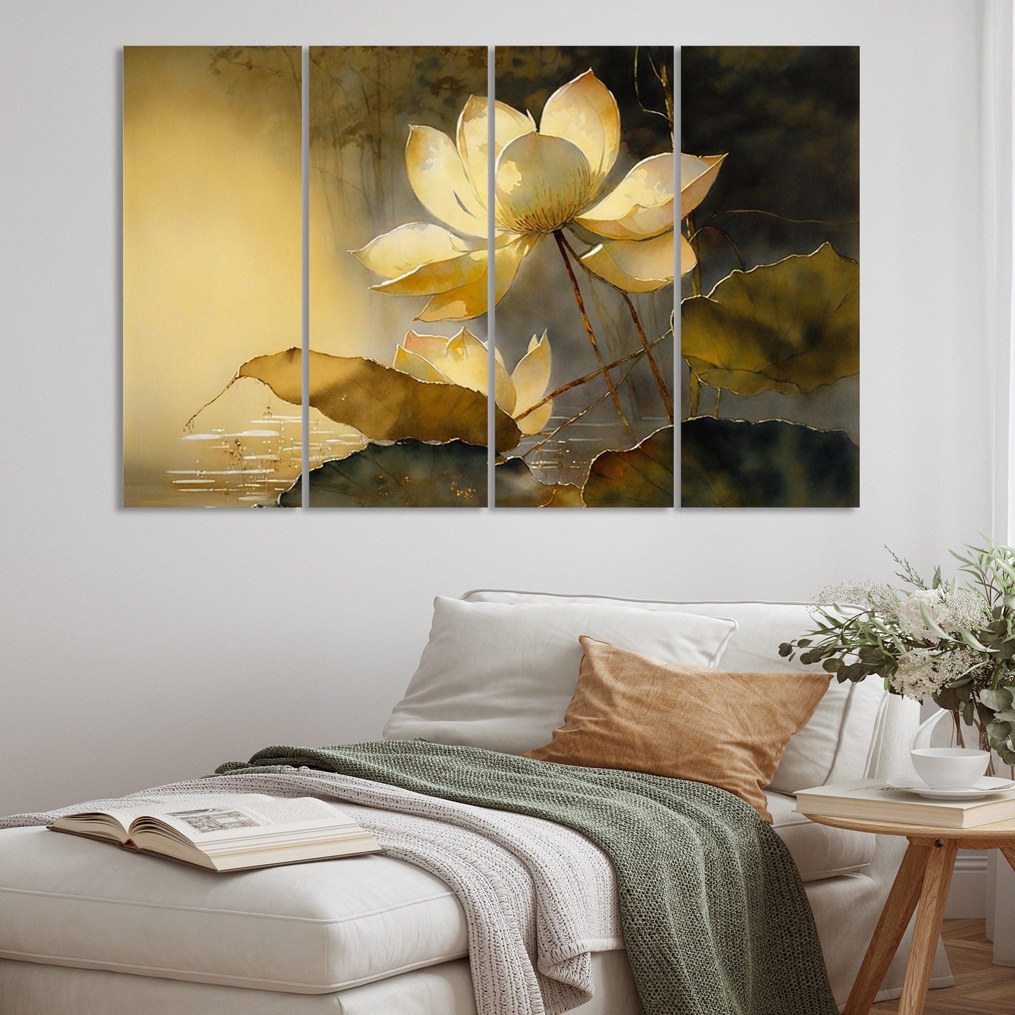 Designart "Blooming Vintage Lotus in the Pond III" Floral Lotus Multipanel Wall Art Living Room