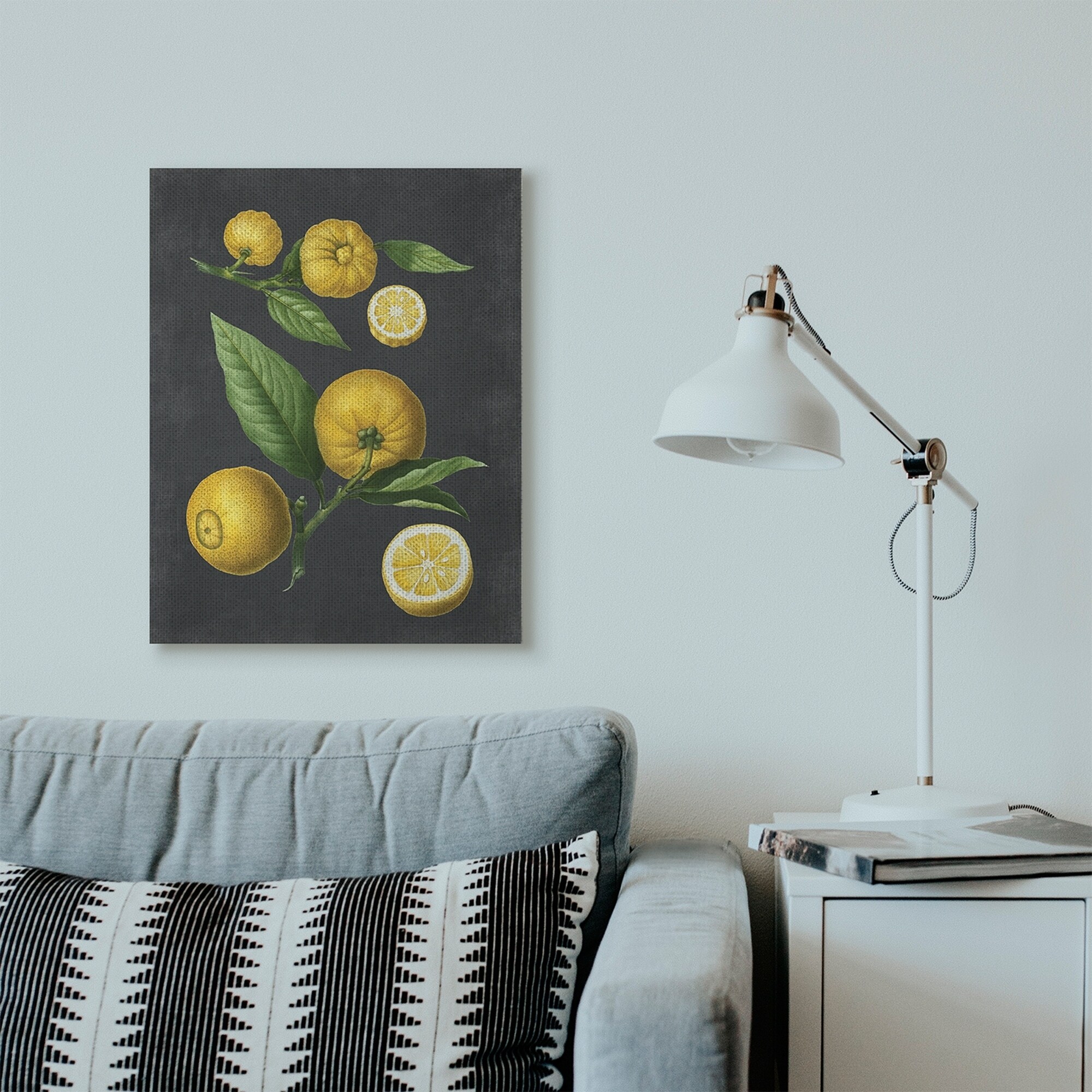 Stupell Industries Botanical Drawing Lemons on Black Design Canvas Wall Art, Proudly Made in USA