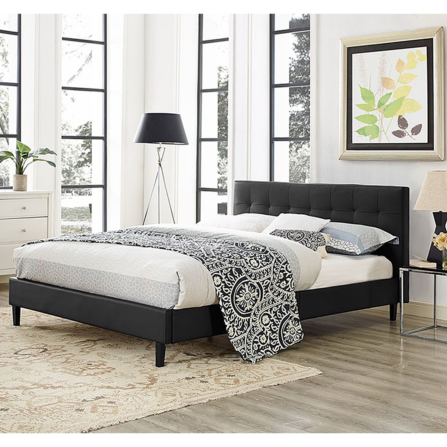Copper Grove Silistra Queen-size Black Vinyl Platform Bed with Tufted Headboard