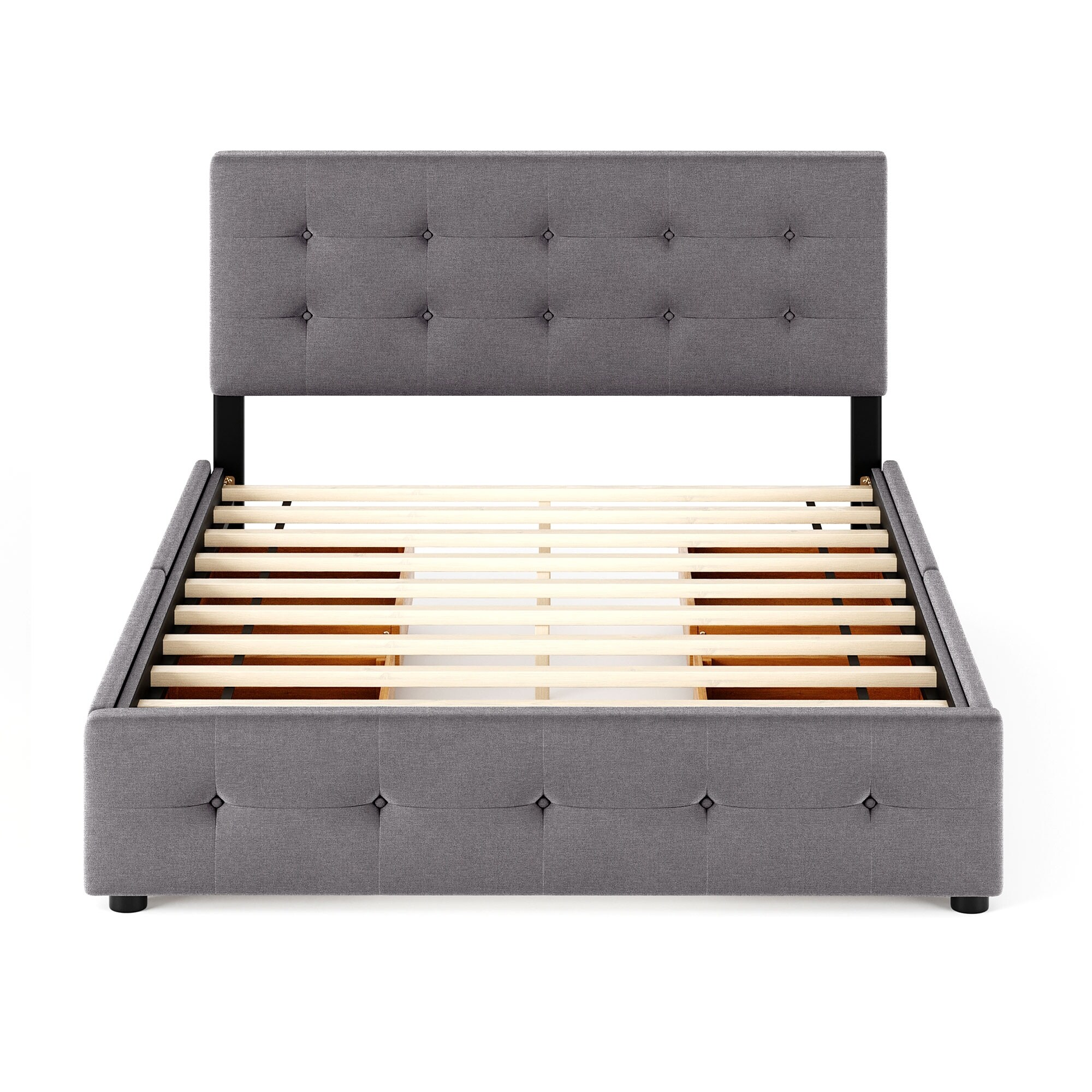 Queen Upholstered Platform Bed Frame with Storage Drawers