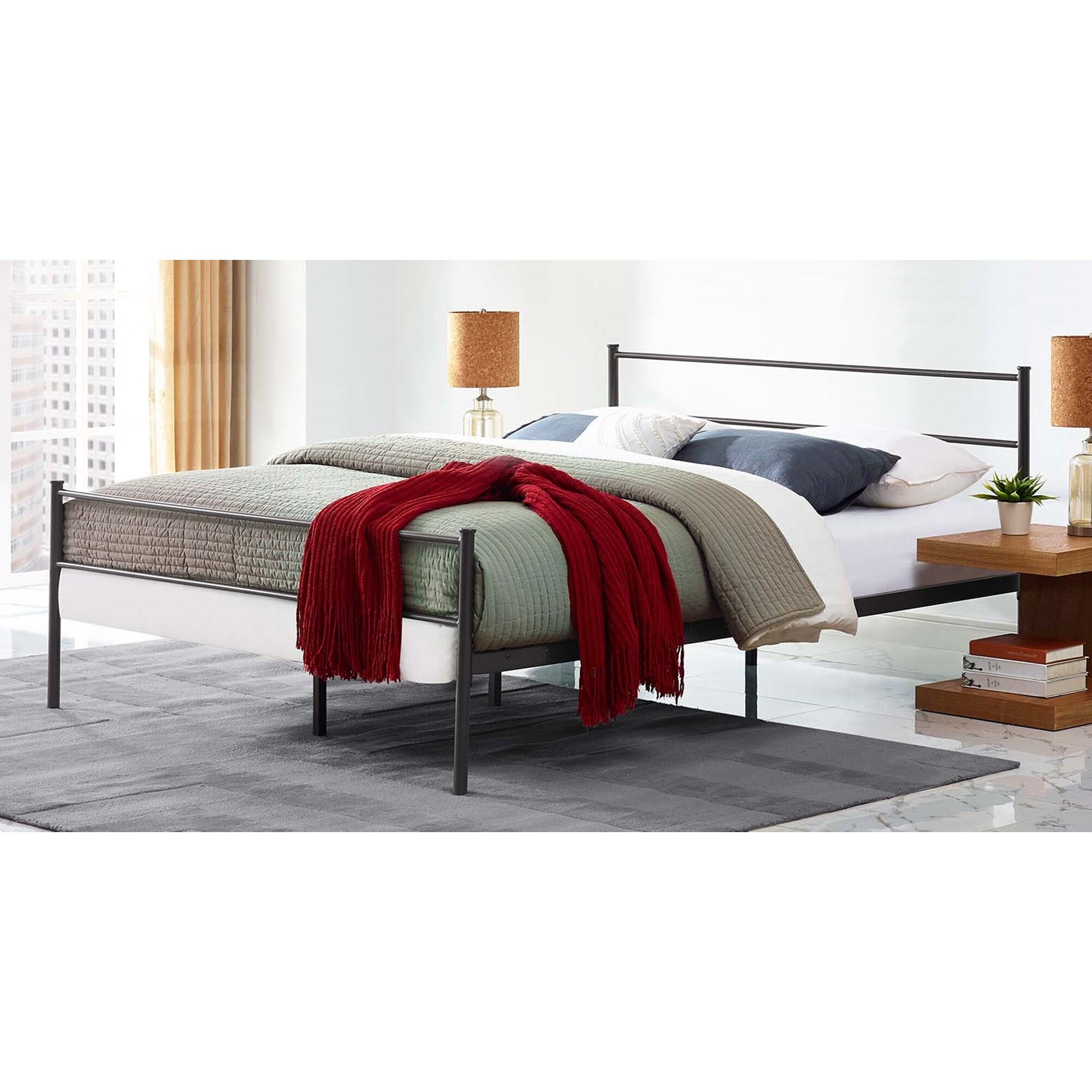 Turville Classic Queen Size Brown Metal Platform Bed