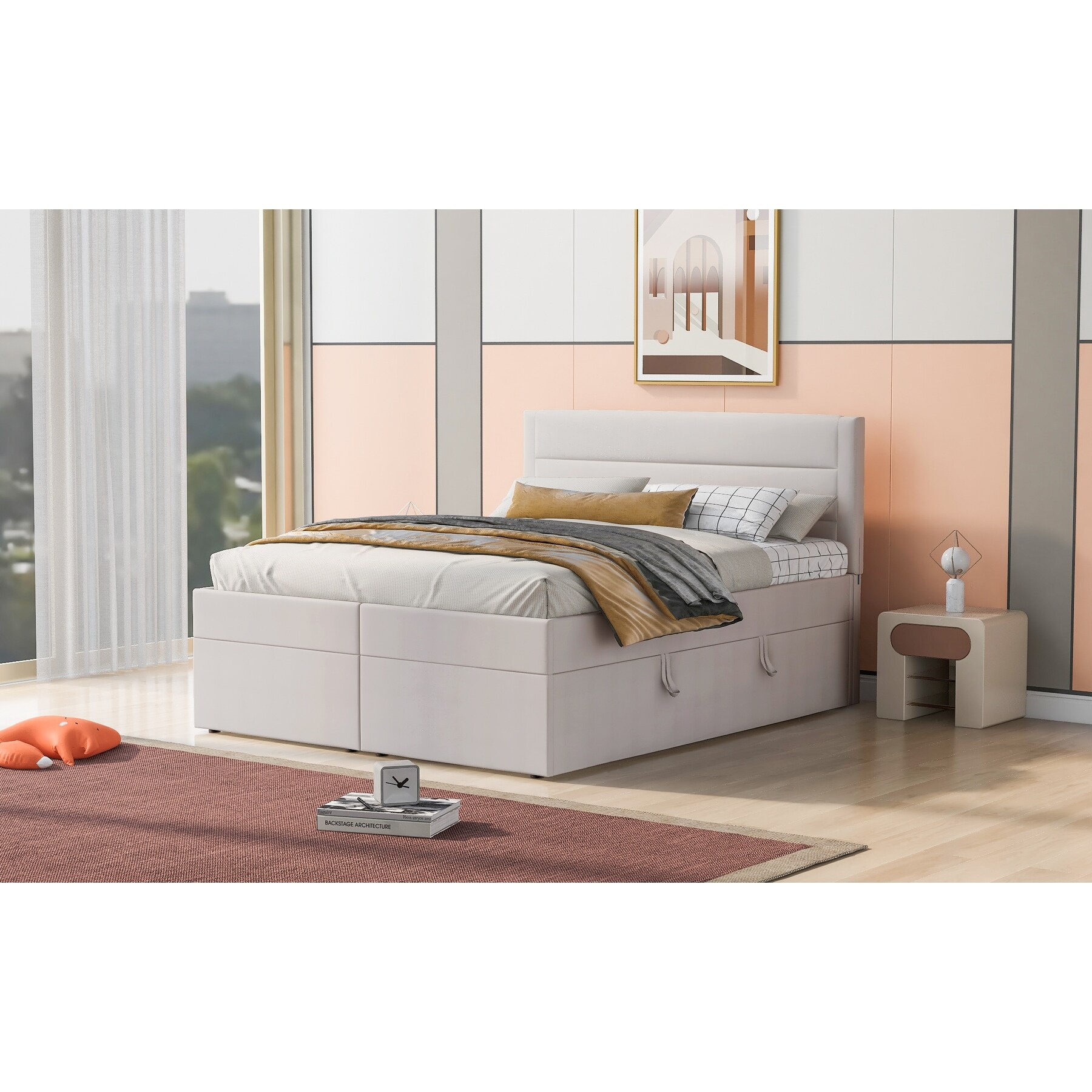 Modern Queen Size Velvet Upholstered Storage Platform Bed