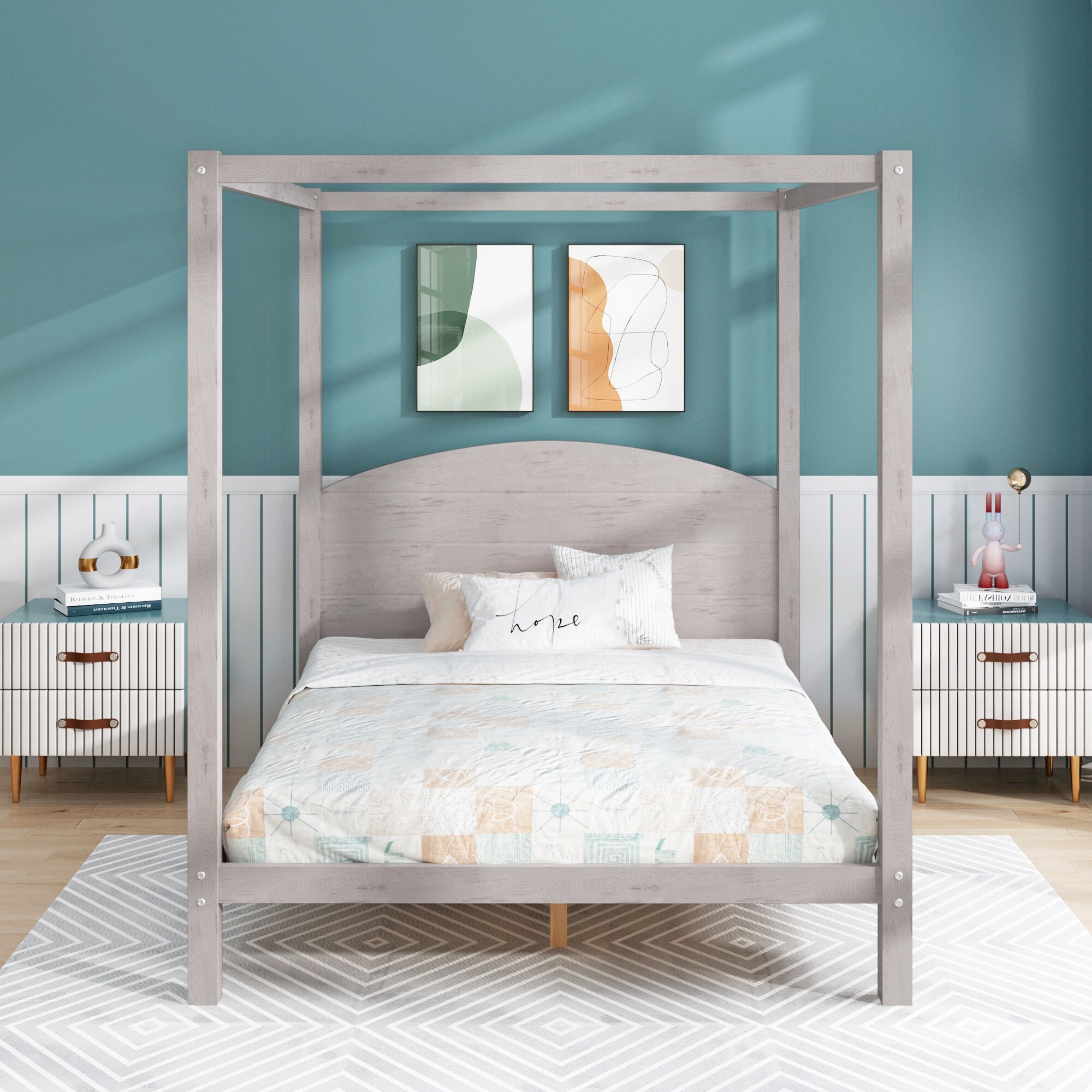 Queen Size Wooden Canopy Platform Bed with Headboard for Bedroom