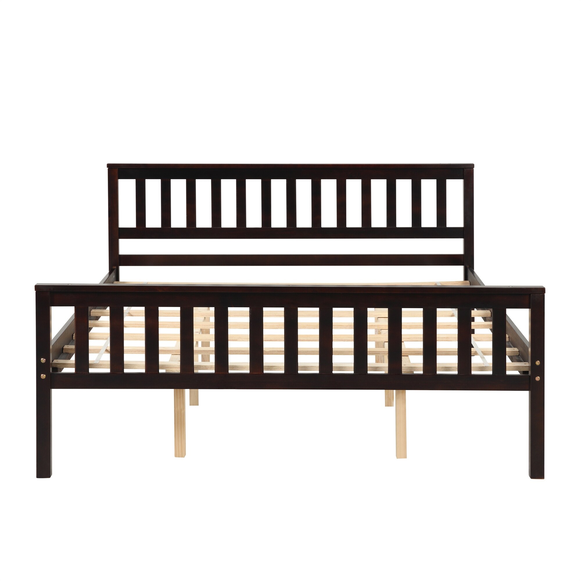 Queen Size Wood Platform Bed with Headboard, Footboard and Solid Wood Slats