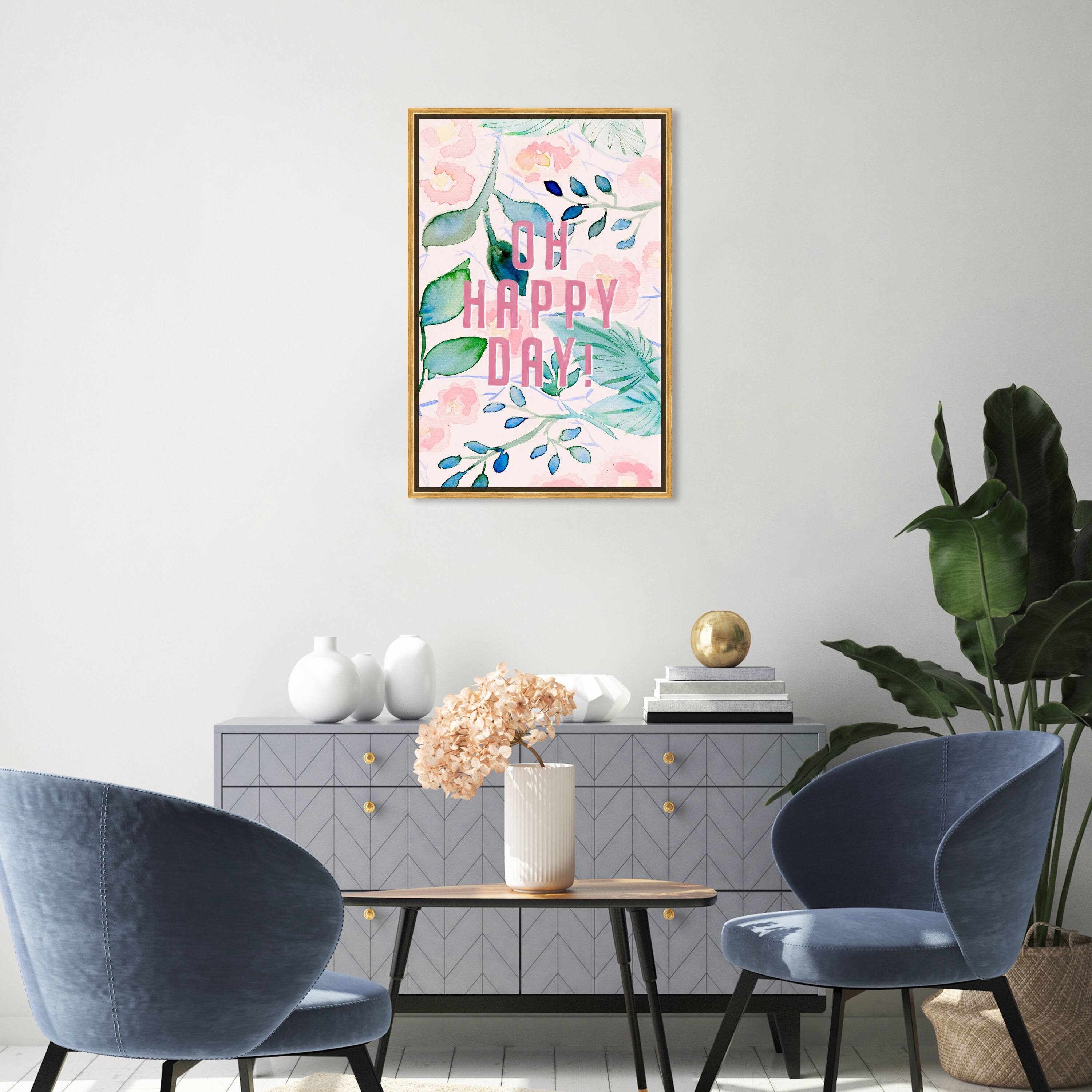 Oliver Gal 'Oh Happy Day Floral' Typography and Quotes Pink Wall Art Canvas Print