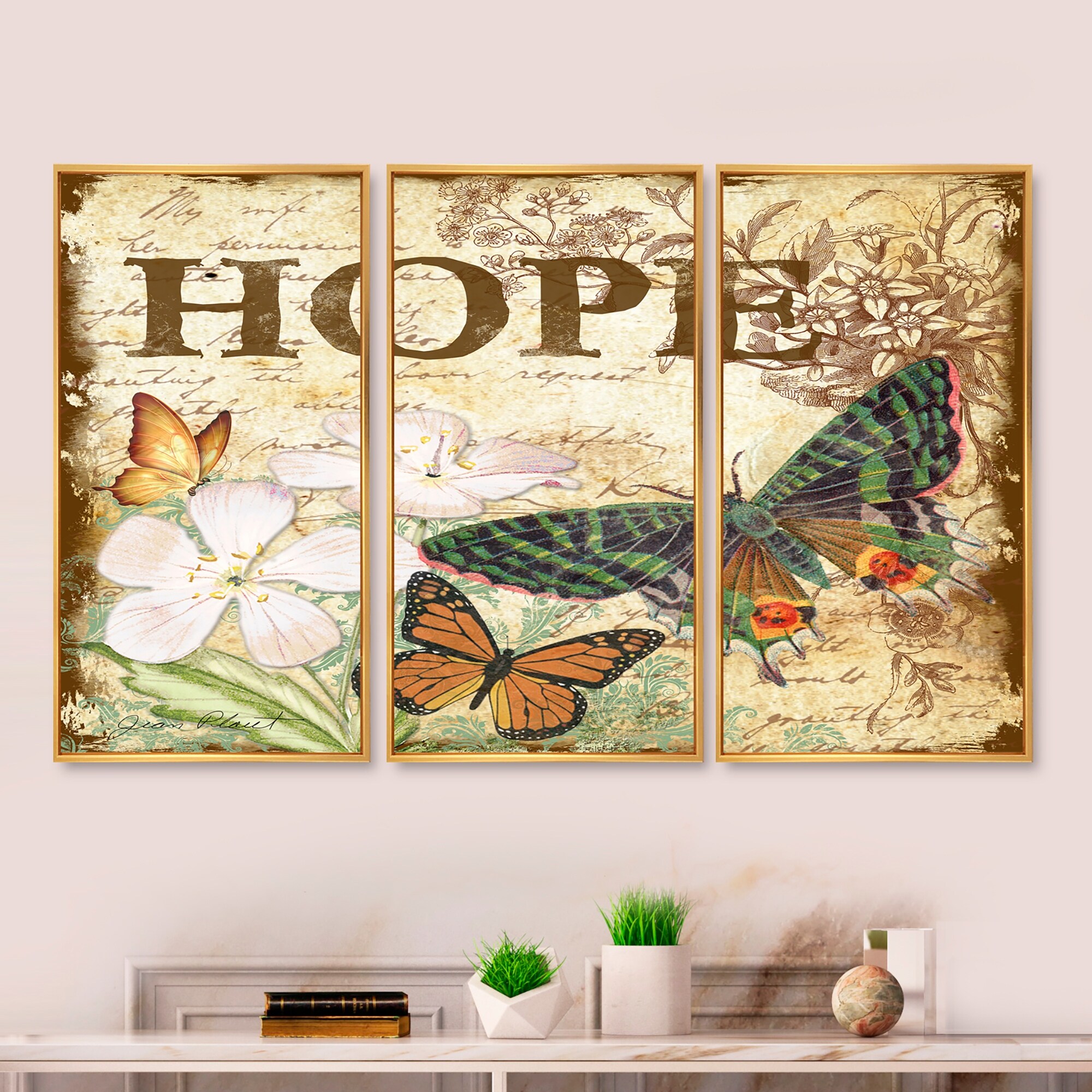 Designart "Inspirational Butterflies Hope" Quote Framed Canvas Wall Art Print Set of 3 - 4 Colors of Frames