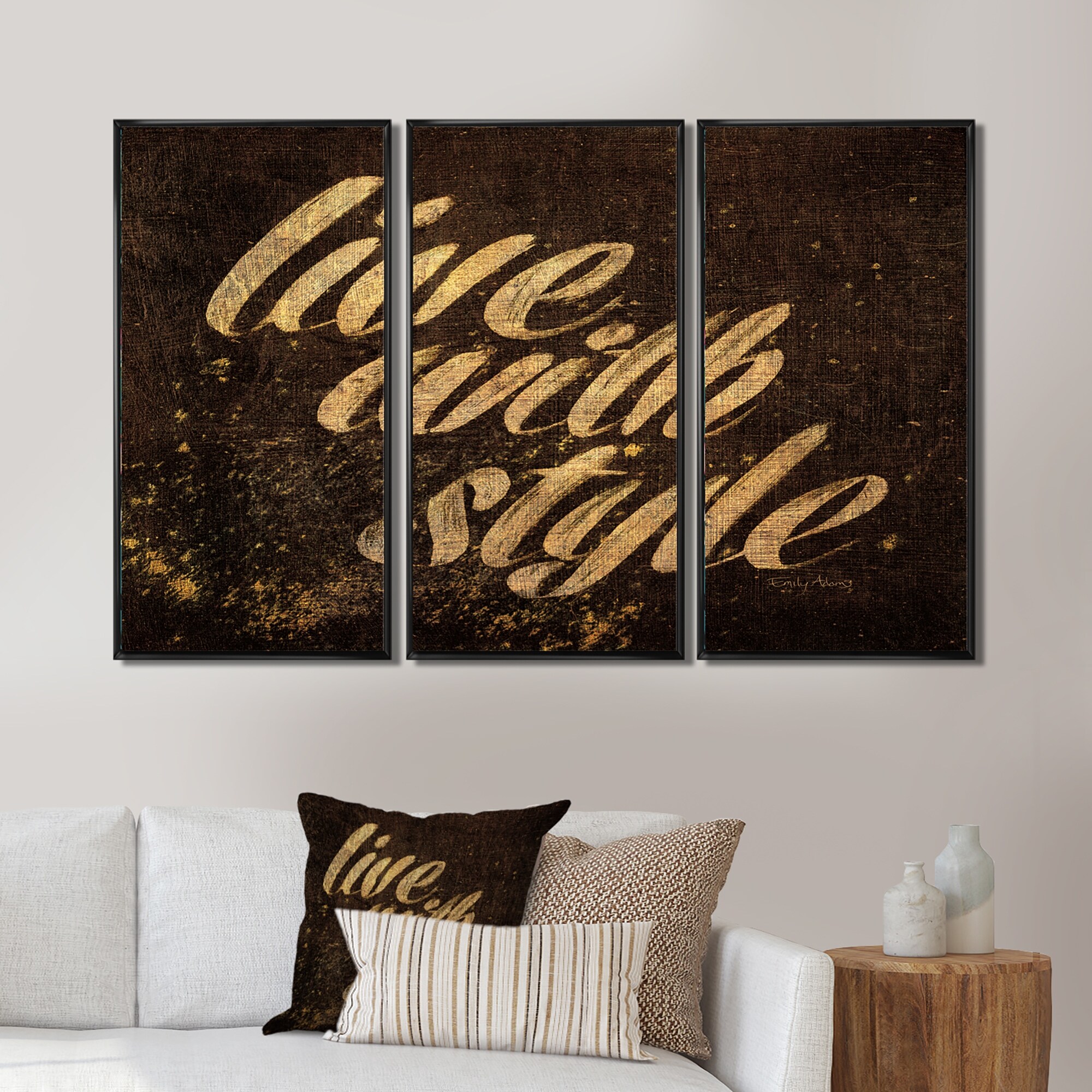 Designart "Gold Glam Live with Style Quotes" Traditional Framed Artwork Set of 3 - 4 Colors of Frames