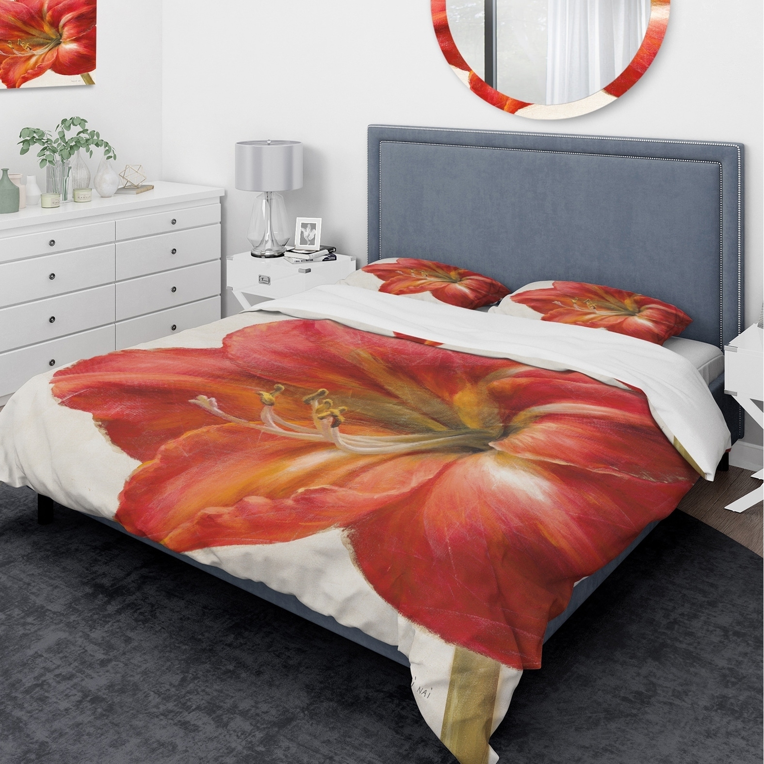 Designart 'Vivid Red Amaryllis' Traditional Bedding Set - Duvet Cover & Shams