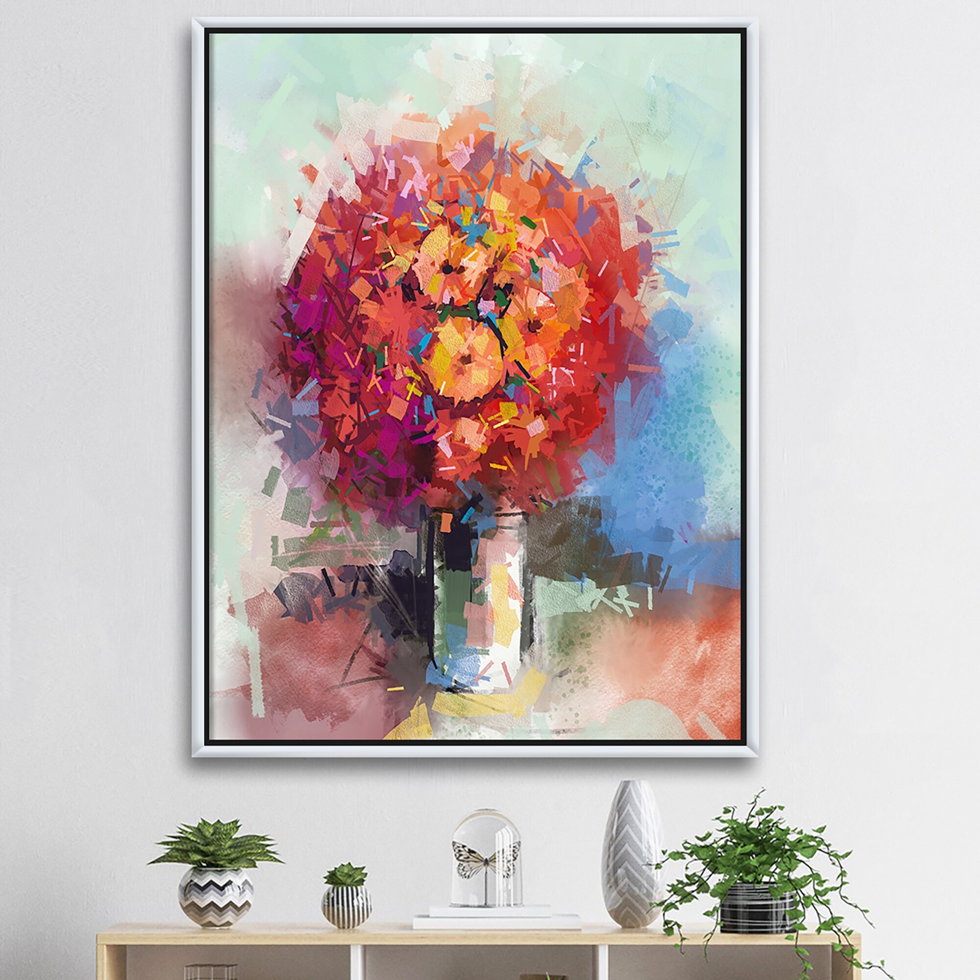 Designart "Abstract Still Life Bouquet of Red Gerbera Flowers" Traditional Framed Canvas Wall Art Print