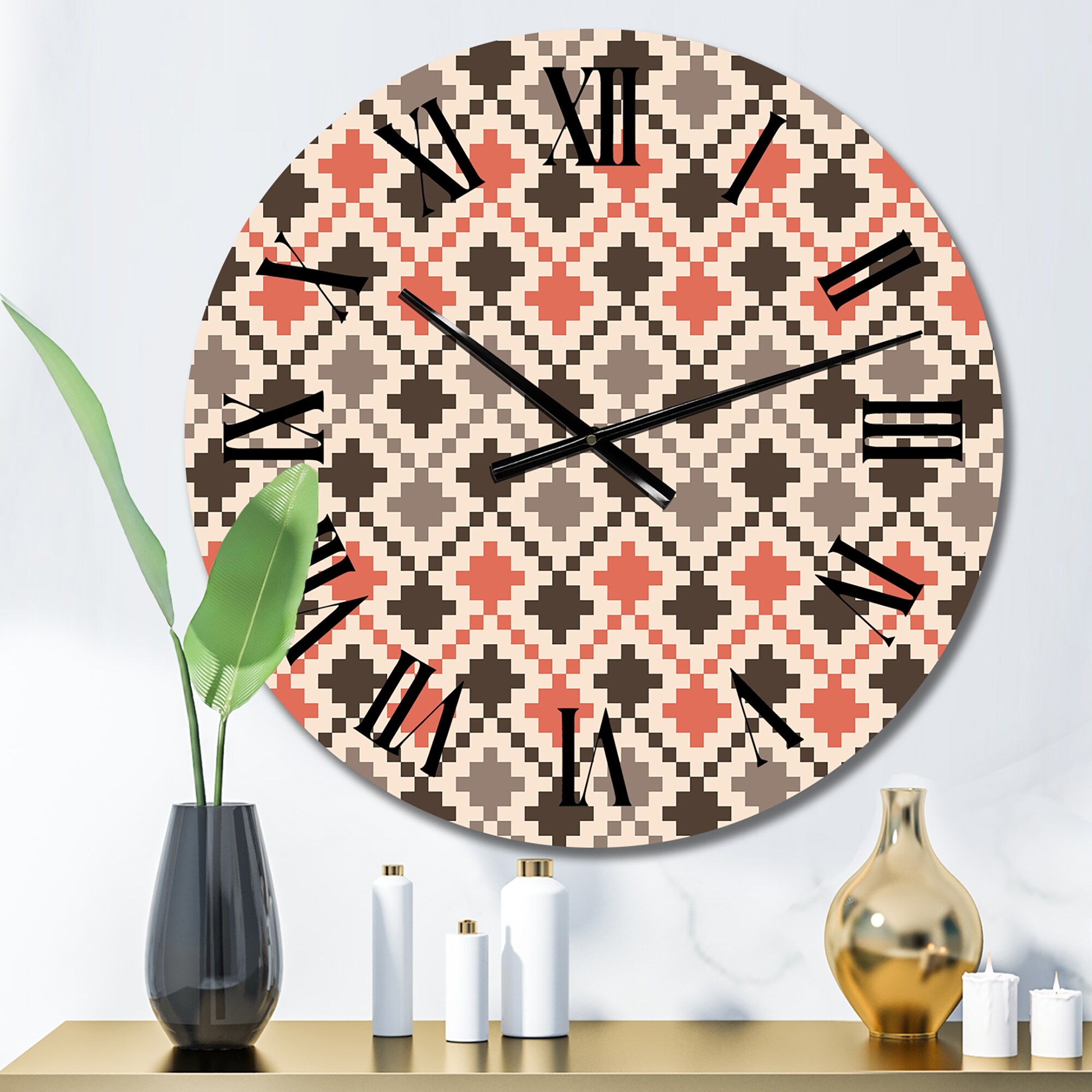 Designart 'Red And Brown Ethnic Geometrics' Patterned wall clock