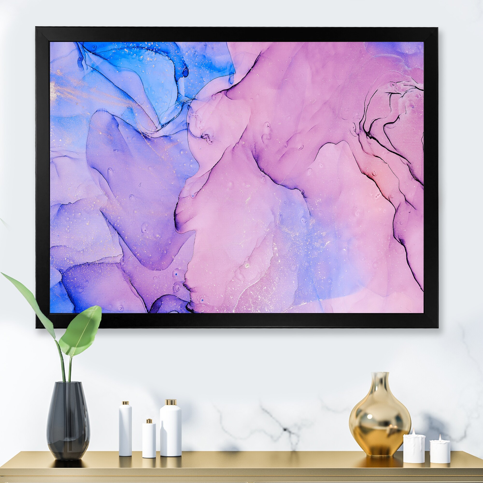 Designart "Translucent Red And Blue Ink Art V" Modern Framed Art Print