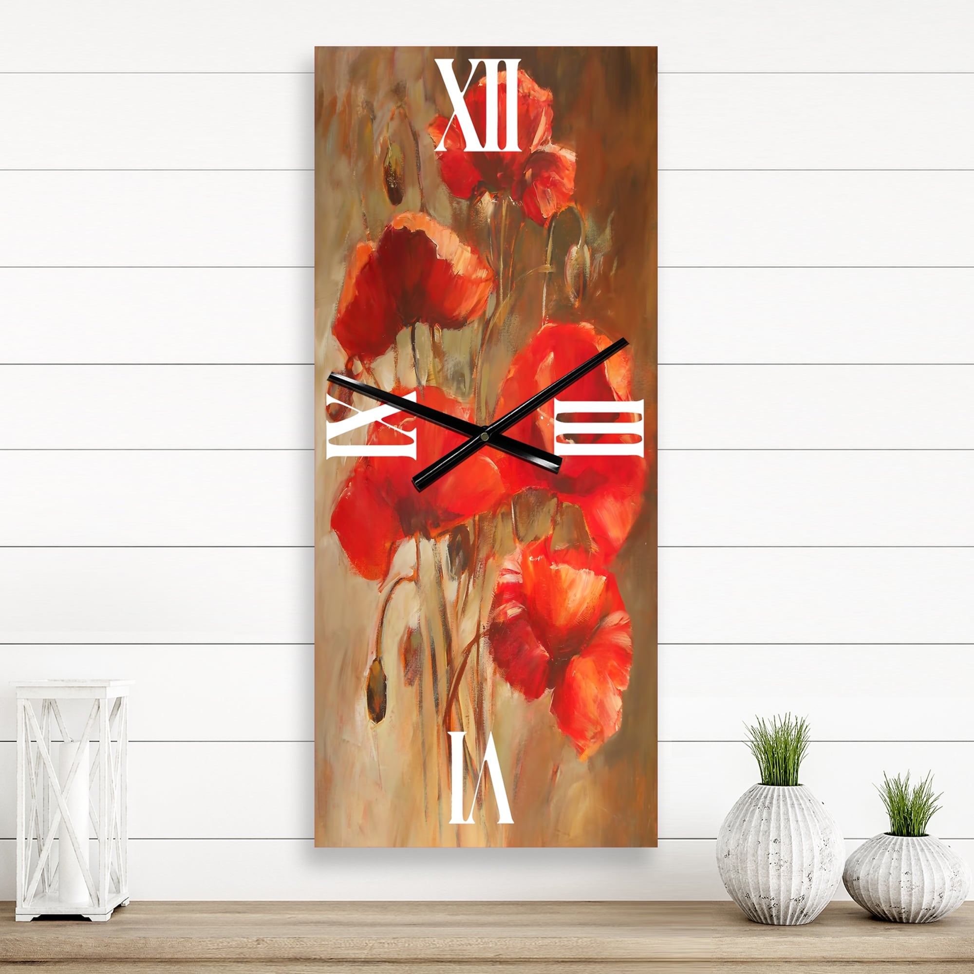 Designart 'Red Blossoming Poppies VI' Traditional Large Wall Clock