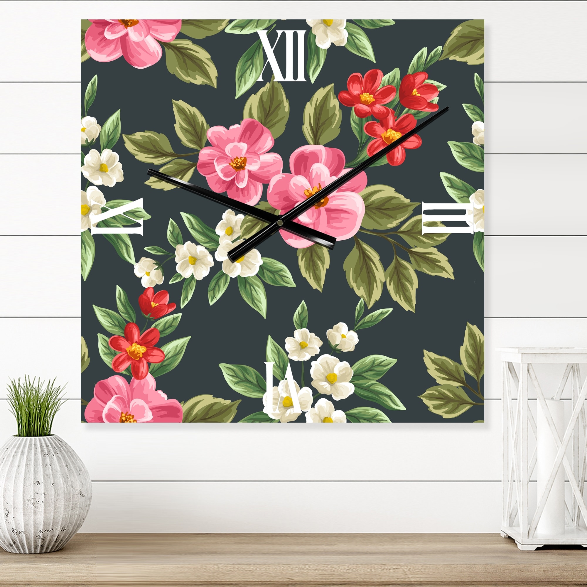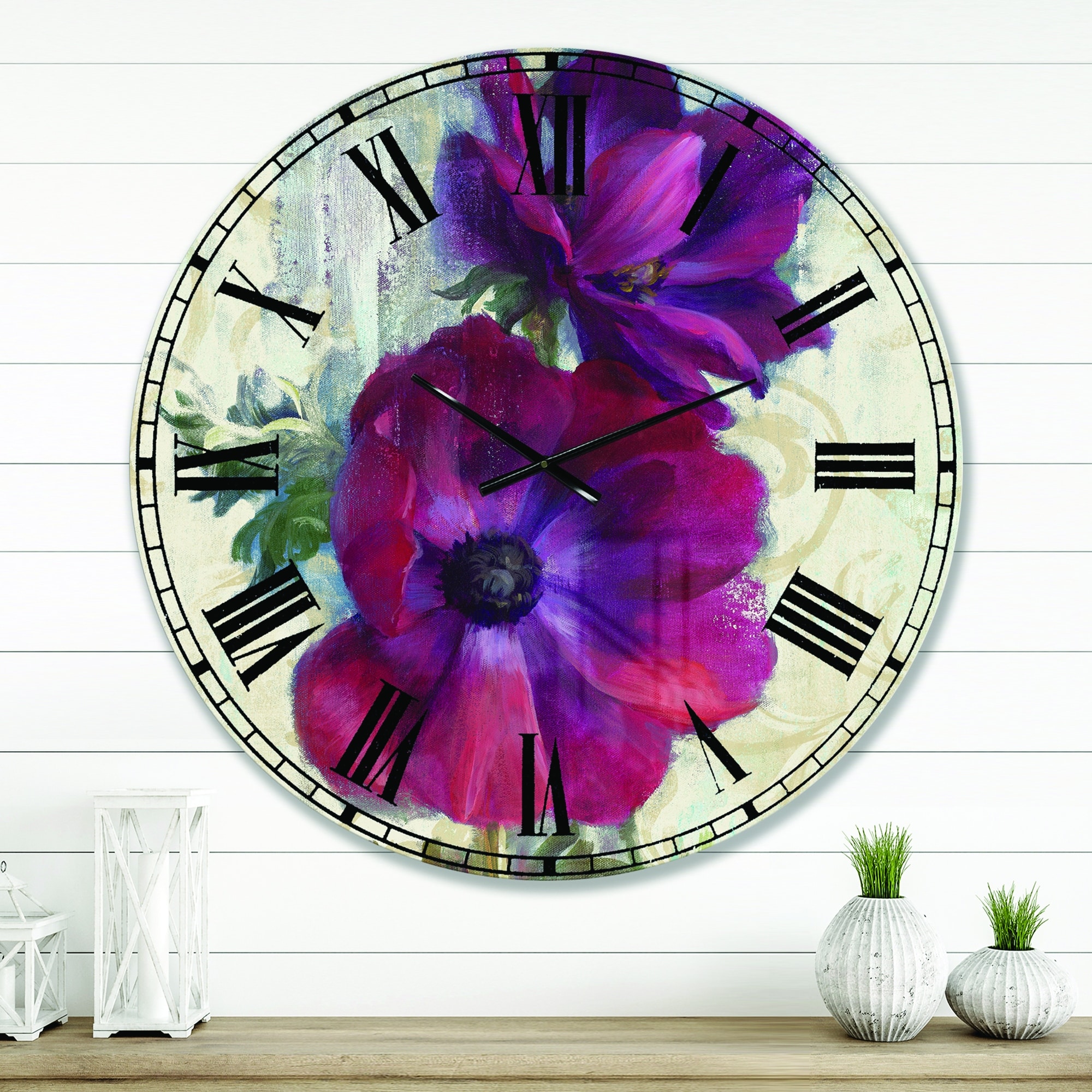 Designart 'Vintage Pink and Red Wildflowers II' Traditional Large Wall Clock