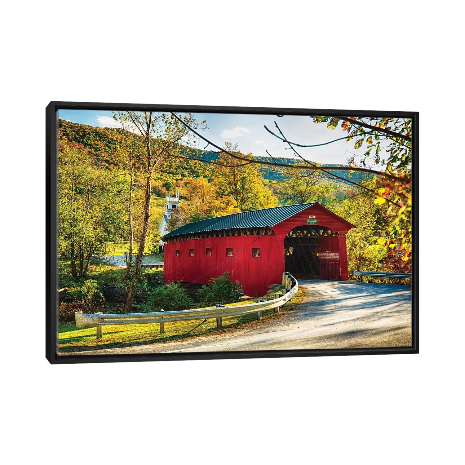 iCanvas "Red Covered Bridge and a Curch, Vermont" by George Oze Framed Canvas Print