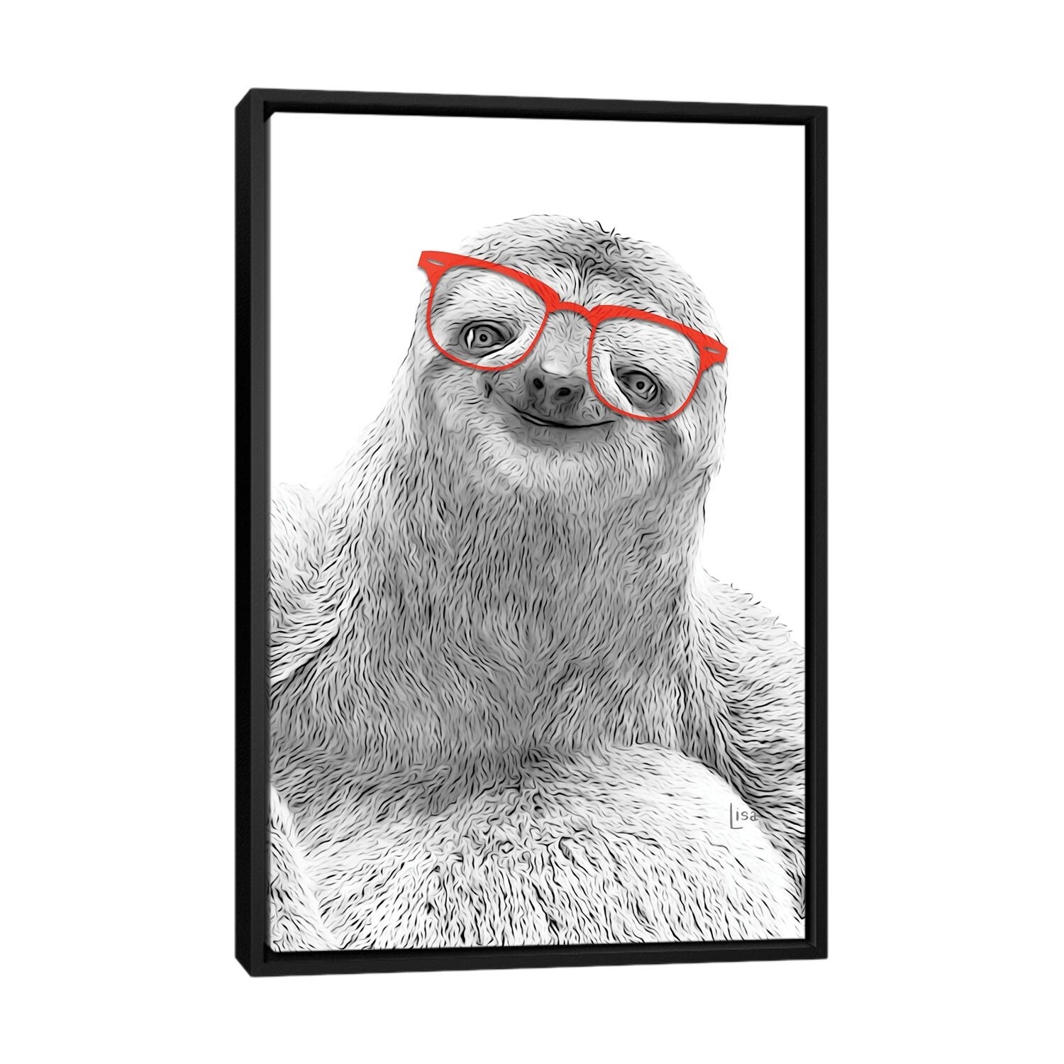 iCanvas "Sloth With Red Glasses" by Printable Lisa's Pets Framed Canvas Print
