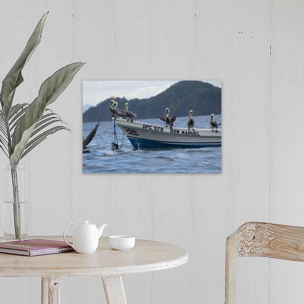 "Pelicans on a boat, Bahia Hermosa, Gulf of Papagayo, Guanacaste, Costa Rica" Canvas Wall Art