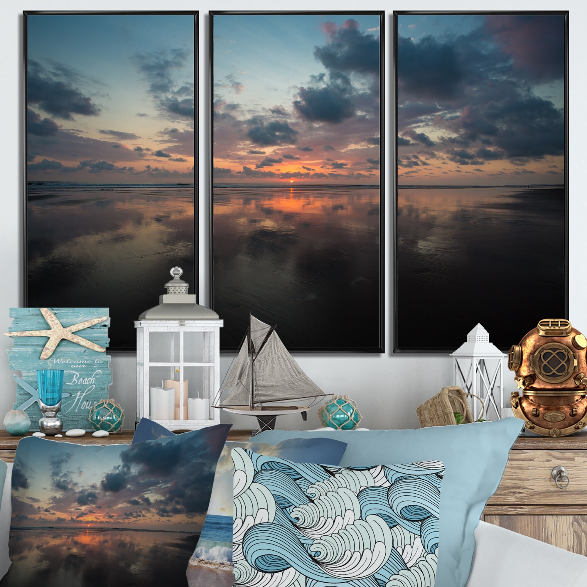 Designart "Matapalo in Costa Rica Beach Sunset" Sea & Shore Framed Wall Decor Set of 3 - 4 Colors of Frames