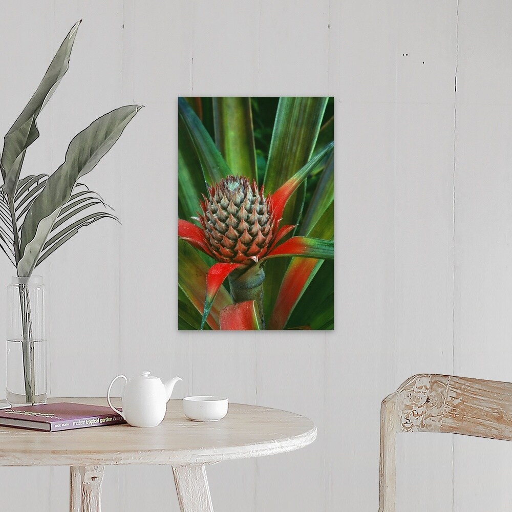 "Pineapple plant with fruit, close up, Costa Rica." Canvas Wall Art