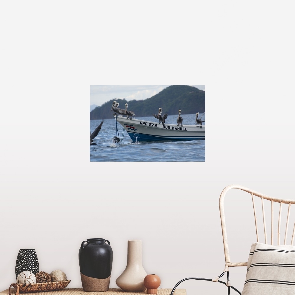 "Pelicans on a boat, Bahia Hermosa, Gulf of Papagayo, Guanacaste, Costa Rica" Poster Print - Multi