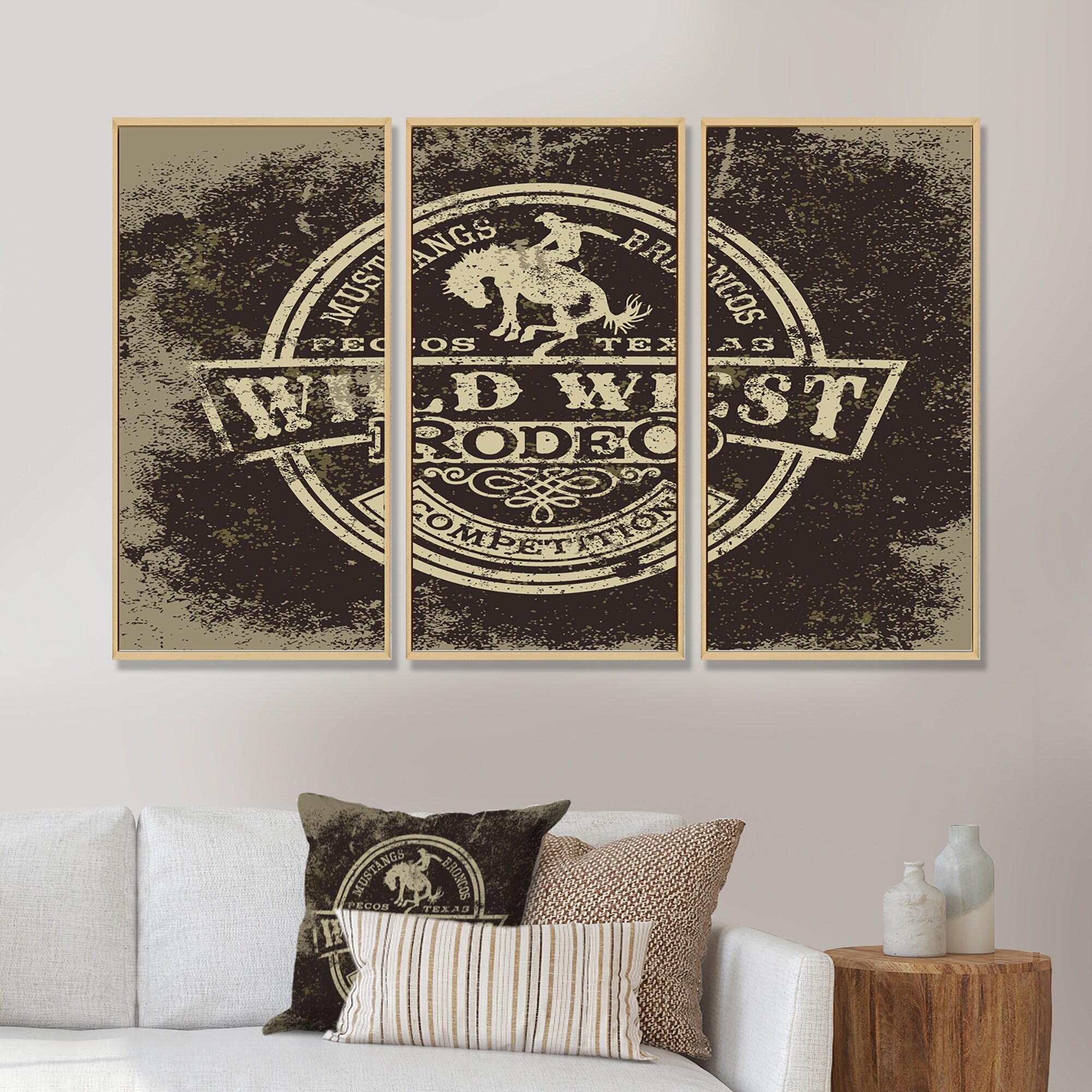 Designart "Wild west rodeo" Farmhouse Framed Art Set of 3 - 4 Colors of Frames