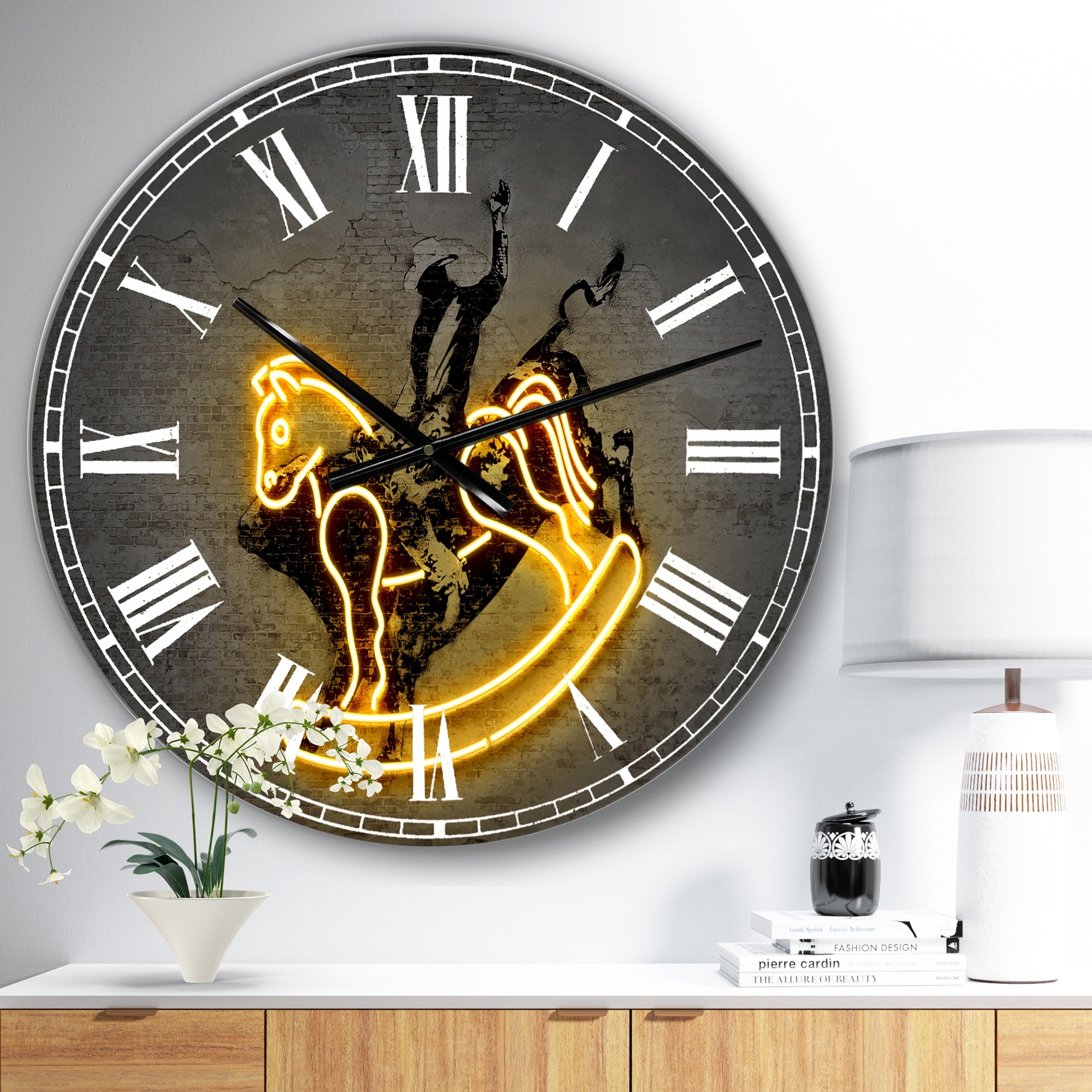 Designart 'Neon Rodeo Horse' Oversized Modern Wall Clock